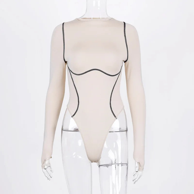 2024 long sleeve striped line patchwork bodycon sexy playsuit autumn winter women streetwear outfits female body