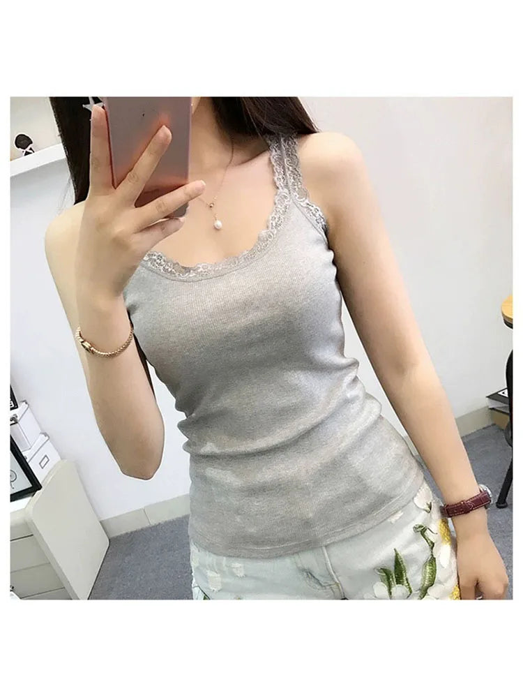 2025 Summer Top, Women's Lace Sleeveless T-shirt, Women's Sexy Strap T-shirt