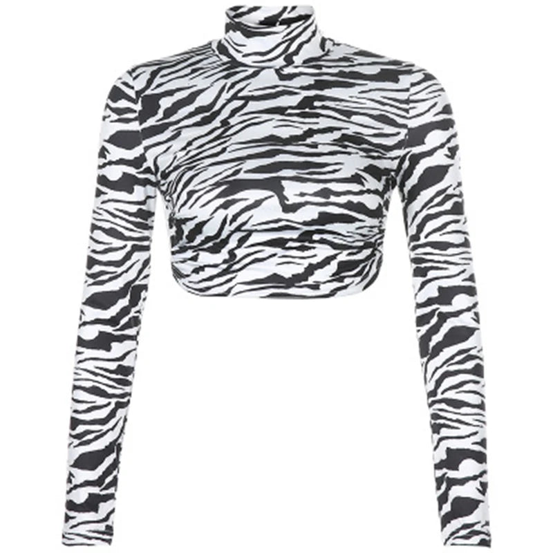 Animal Zebra Print Backless Cropped Tshirt Women Sexy Long Sleeve T-shirt Ladies Fashion Crop Tops Tees Streetwear