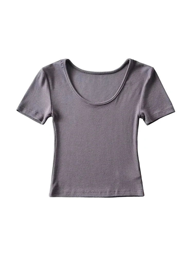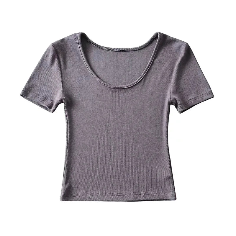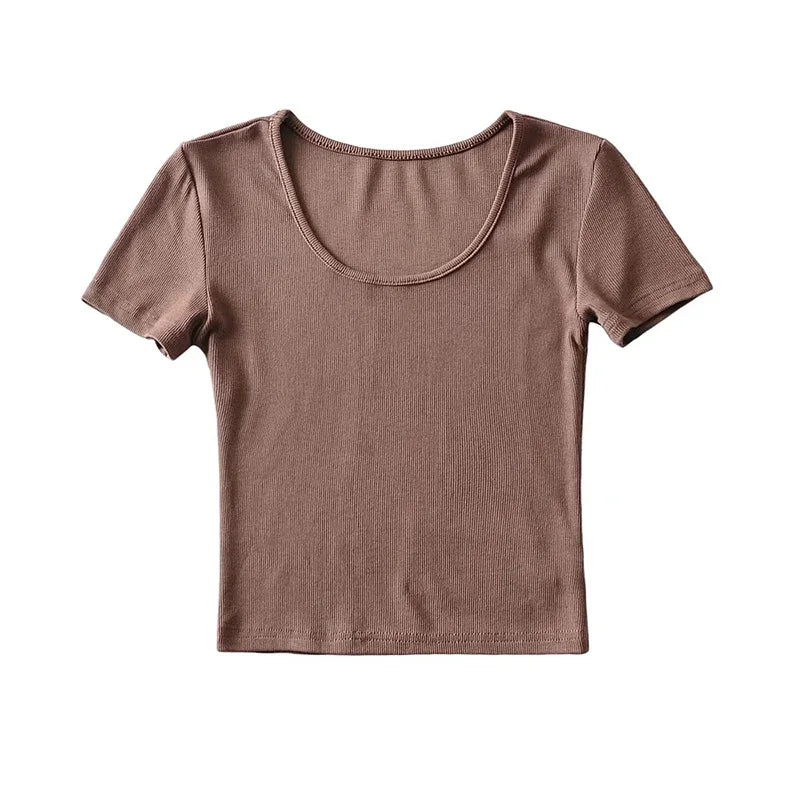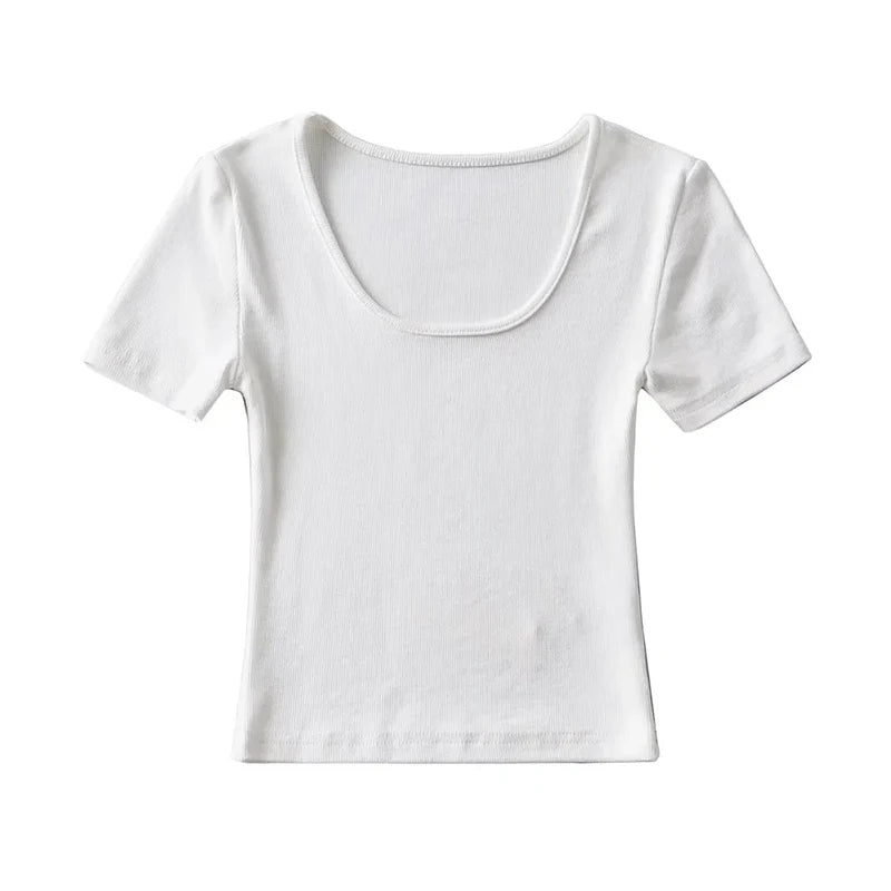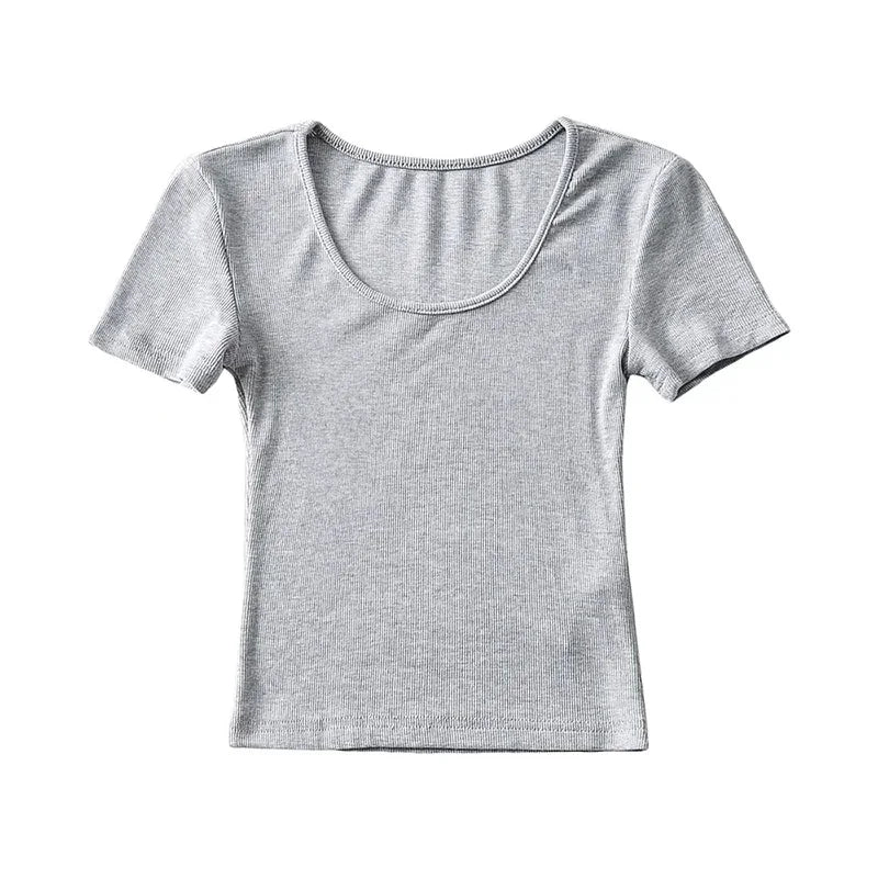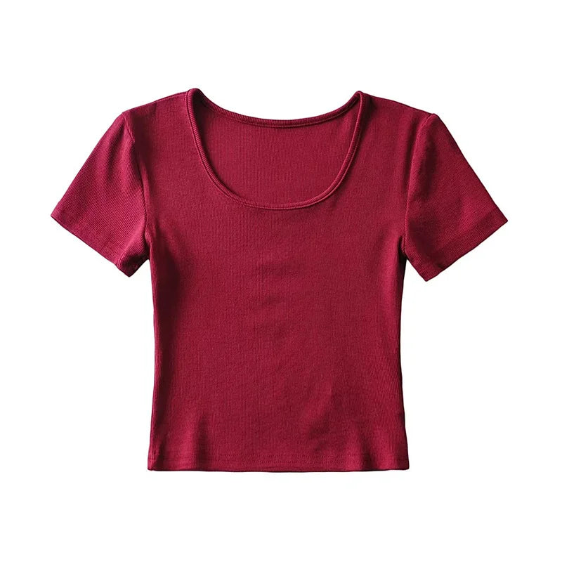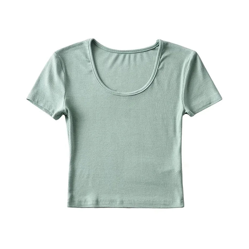 Casual Summer Woman Slim Fit T-shirt Tight Short-Sleeve O-neck Tee Crop Tops