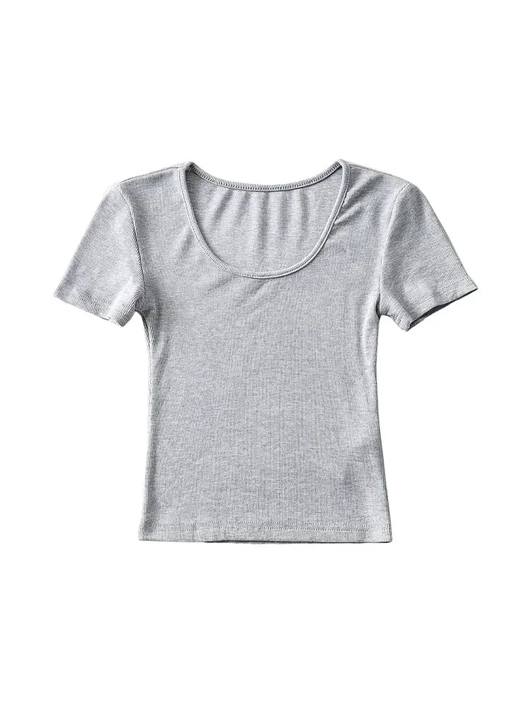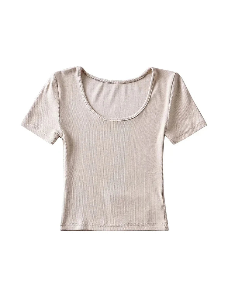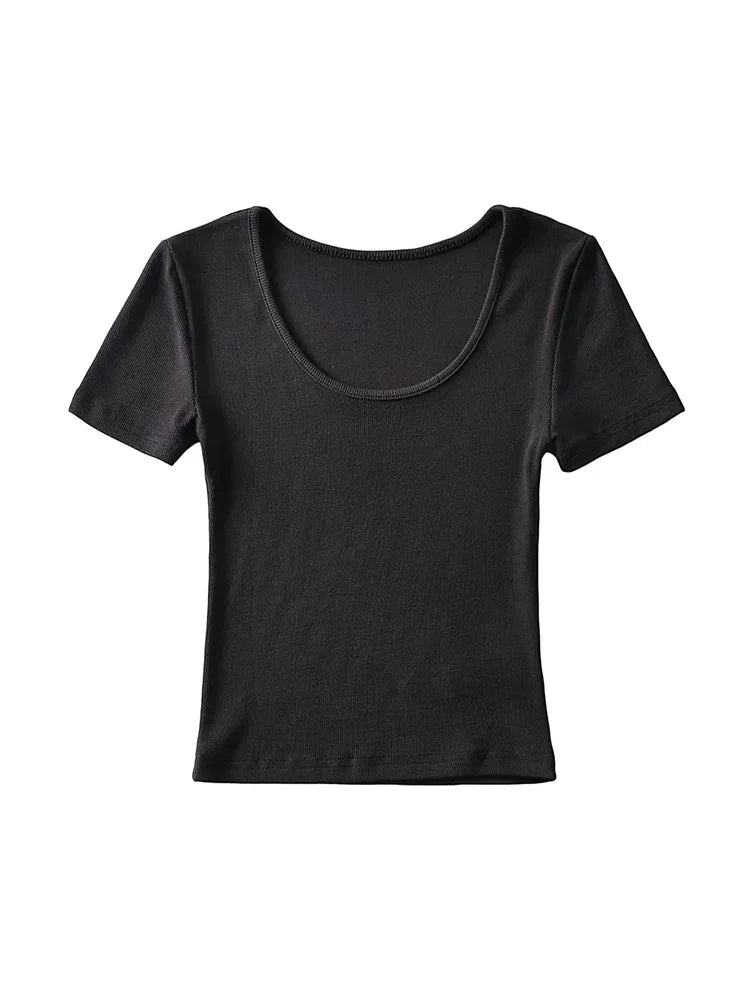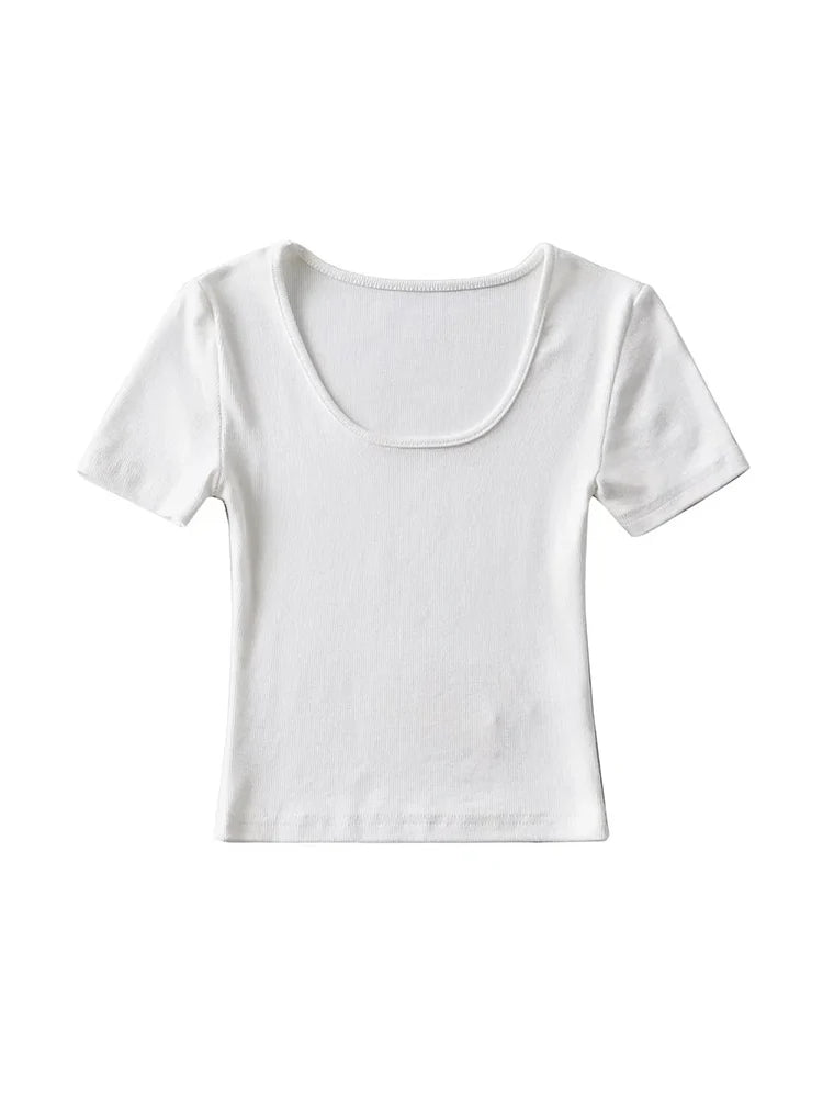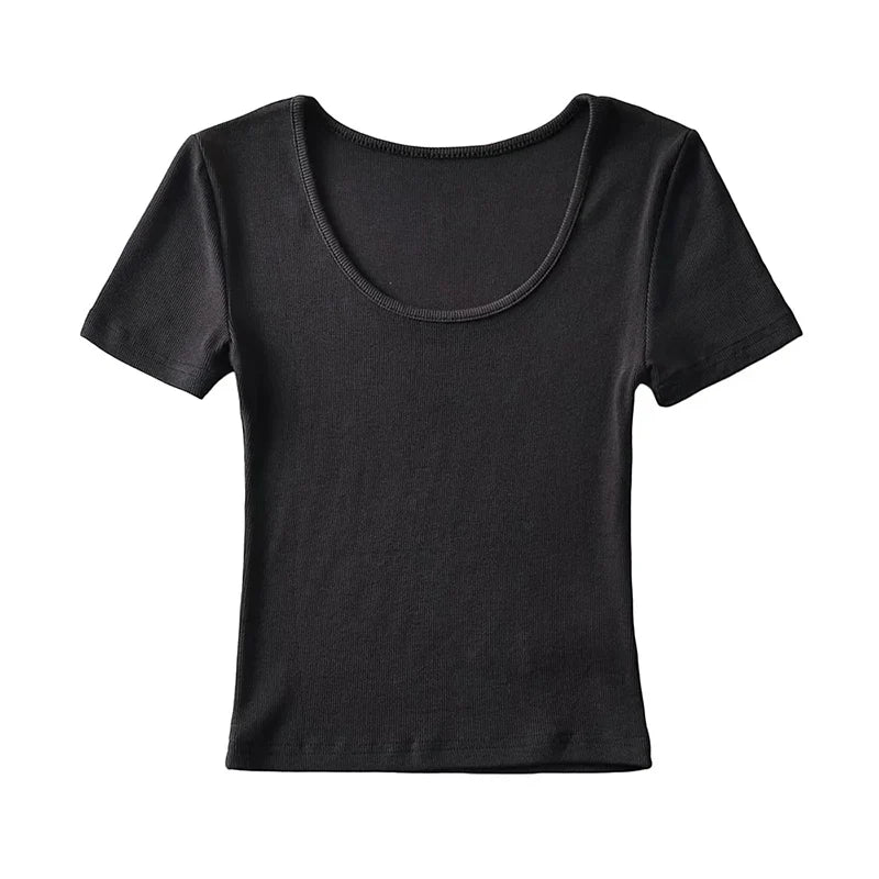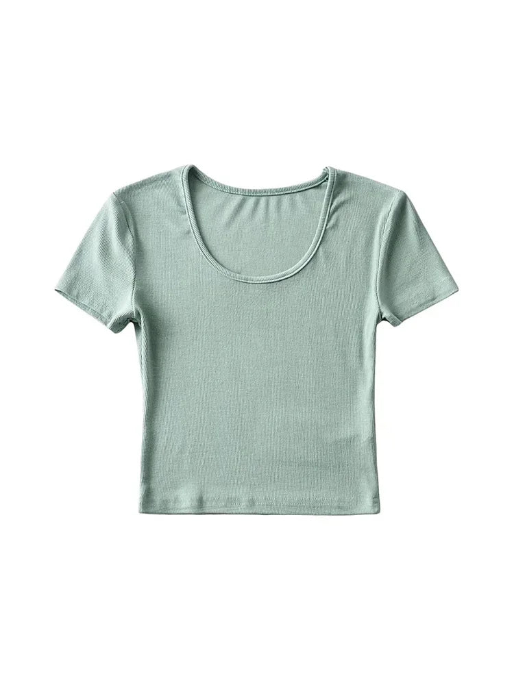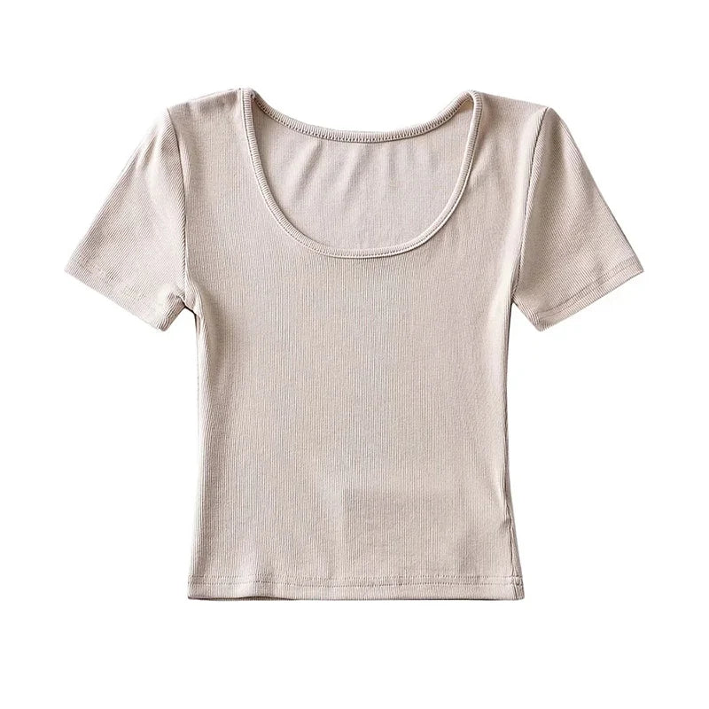 Casual Summer Woman Slim Fit T-shirt Tight Short-Sleeve O-neck Tee Crop Tops