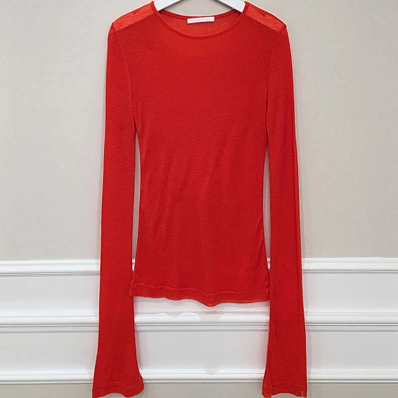 Sexy Shirt Women T-Shirt Long Sleeve Korean Style Slim Basic Elasticity Tshirt Top Womens Clothing T Shirt Femme