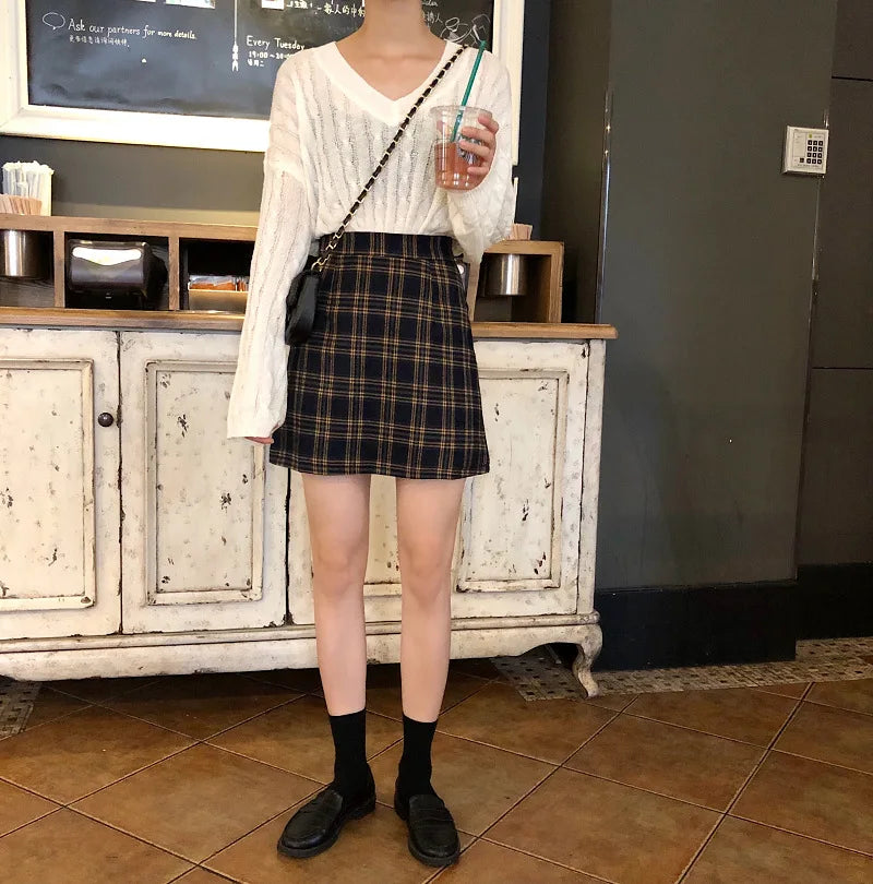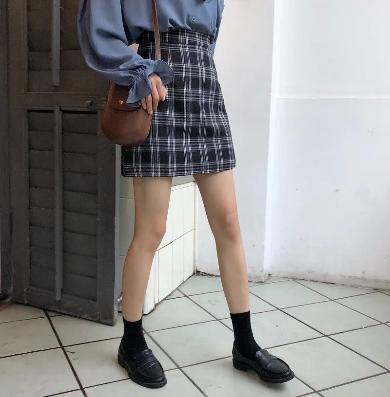 Skirts Women Retro Plaid Summer Mini Skirt A-line Ulzzang High Waist Students New Arrival Fashion Girls Female Stylish Fit 2XL