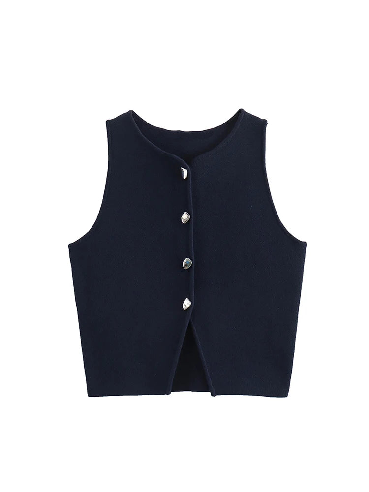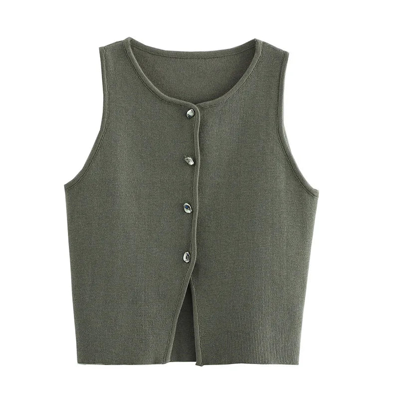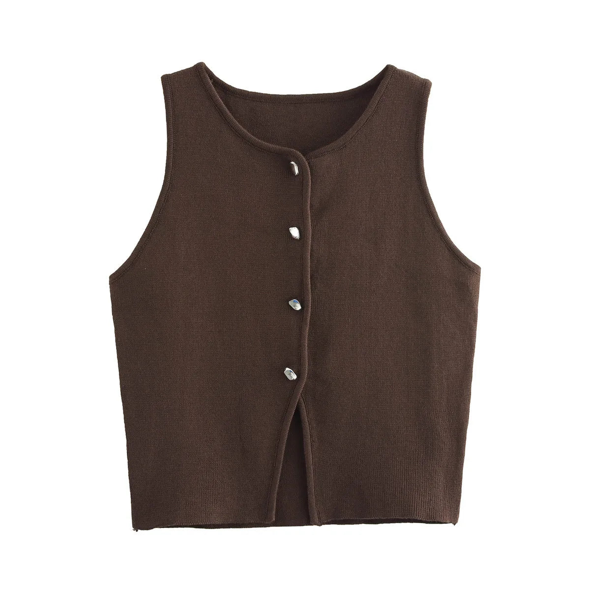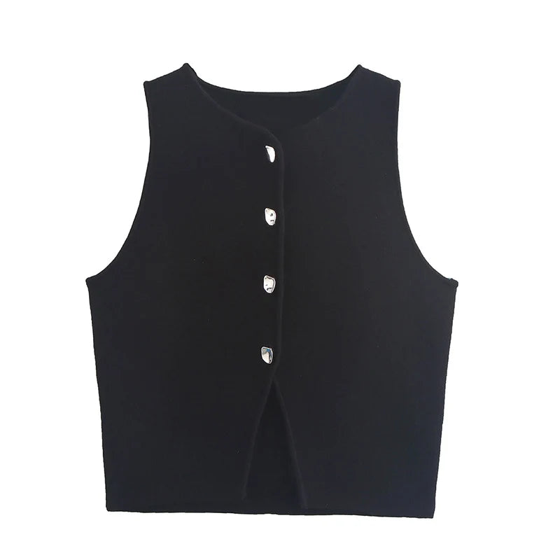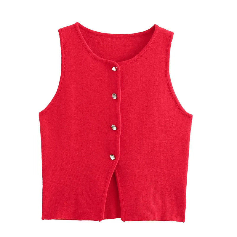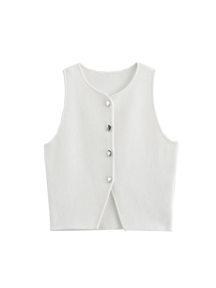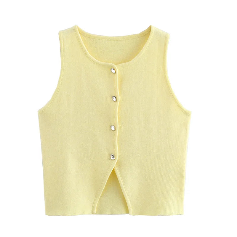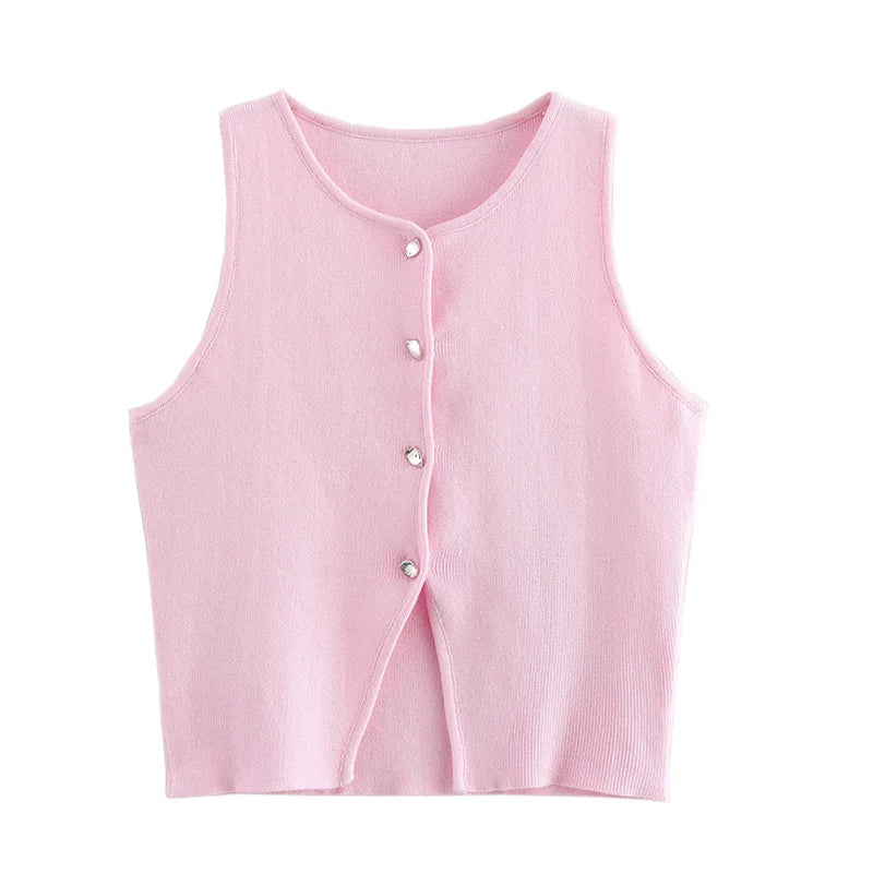 White Knit Crop Top Women Button Short Tops Woman 2025 Summer Tanks Camis Tops for Women Streetwear Vest Tank Top Female