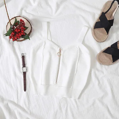 Women Crop Top Club Sexy Zipper Knitting Camisole With Hole Female Tank Tops Ladies Sleeveless Solid Simple Tops Women
