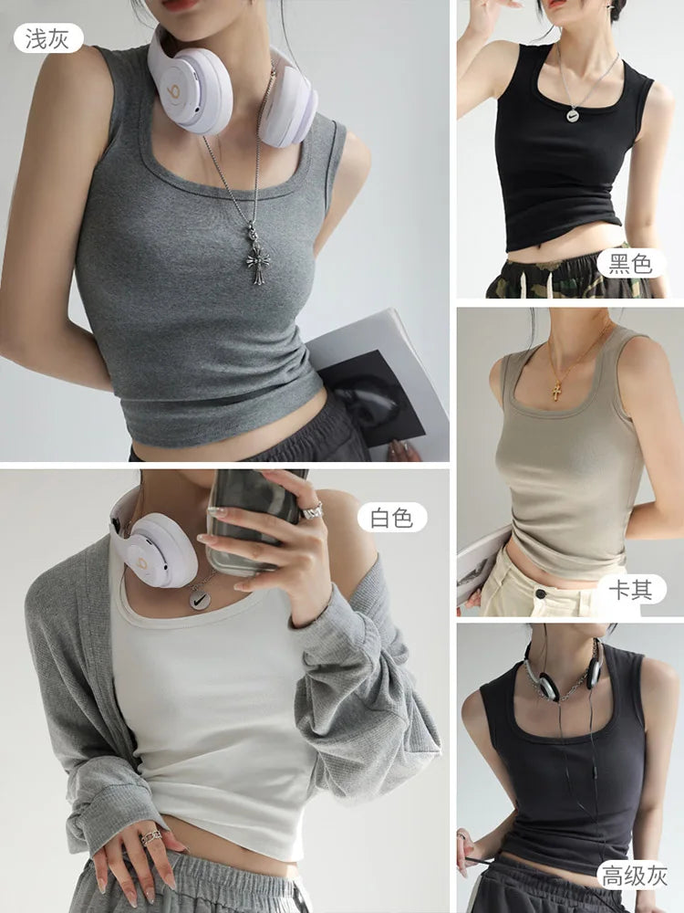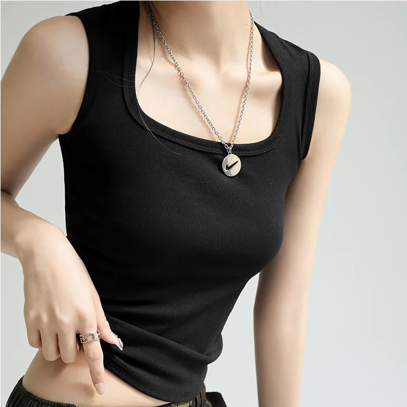 Women Solid U Neck Ribbed Tank Top Camisole Women Summer Basic Elastic Tank Top U Neck Solid Tank Top