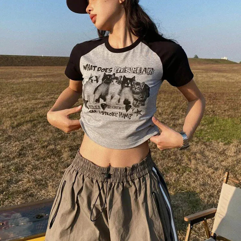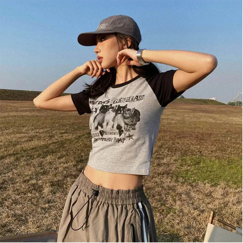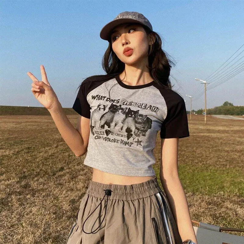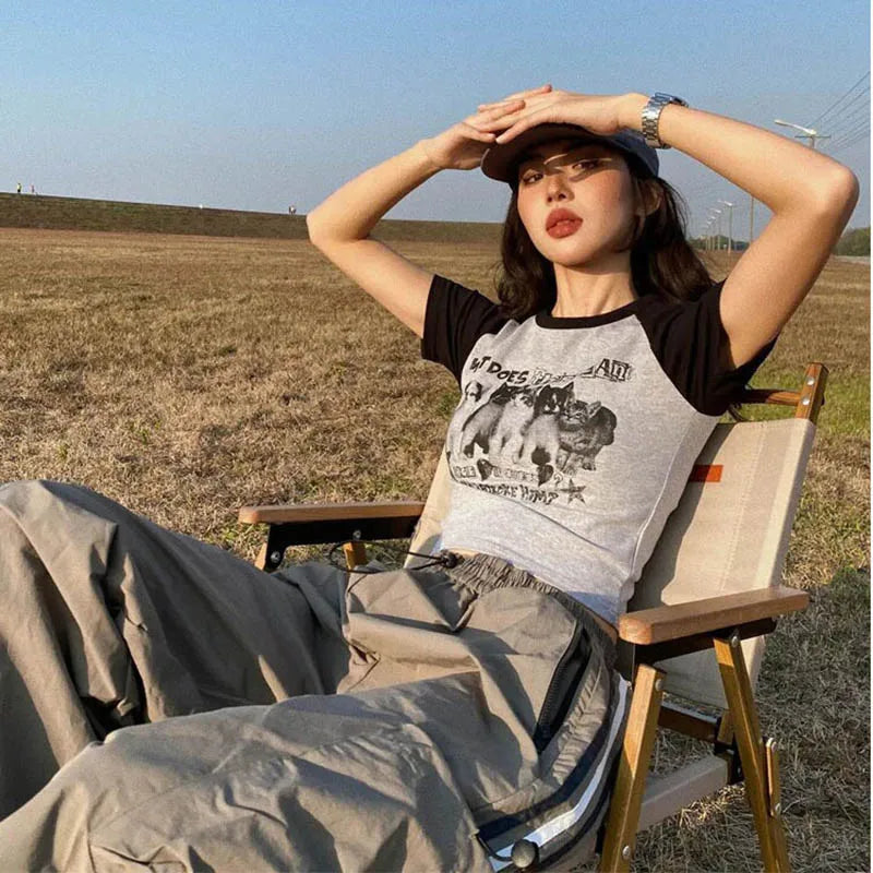 Women T-Shirt Y2k Print Slim Graphic Summer Korean Fashion Harajuku Streetwear Short Sleeve Aesthetic Clothes