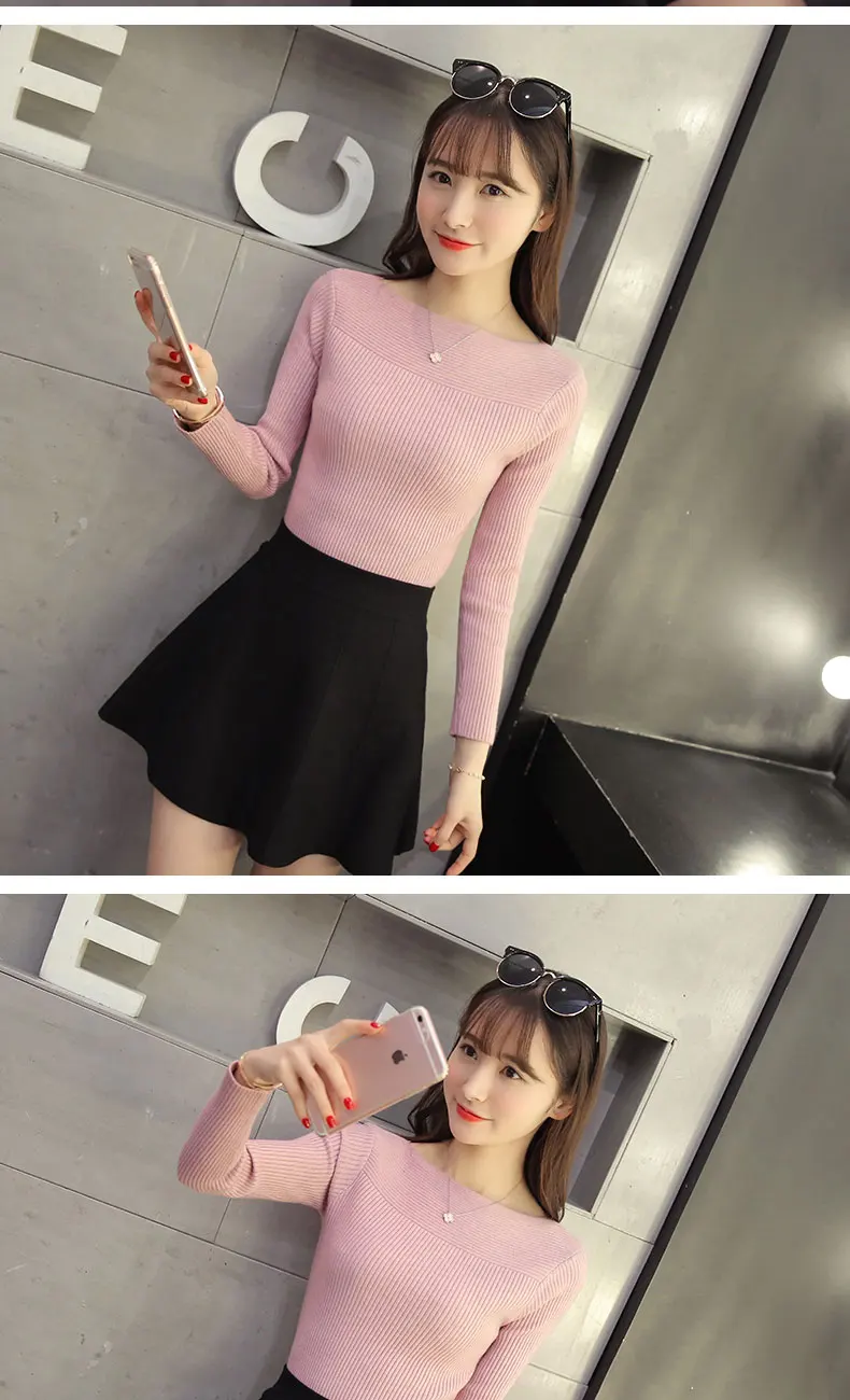 2022 Casual Long Sleeve Autumn Knitted Sweater Women Pullover Sweaters Korean Style Winter Slim White Pull Knitwear