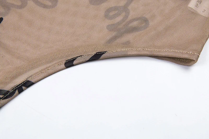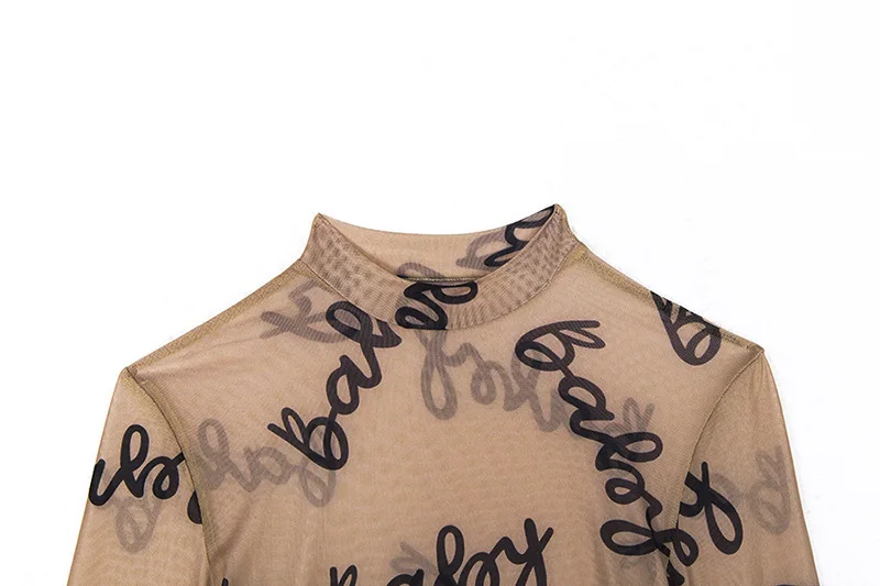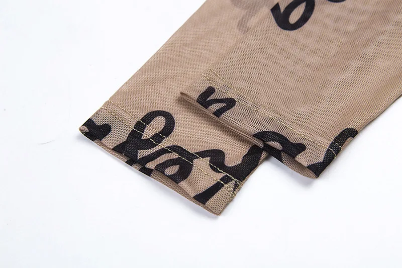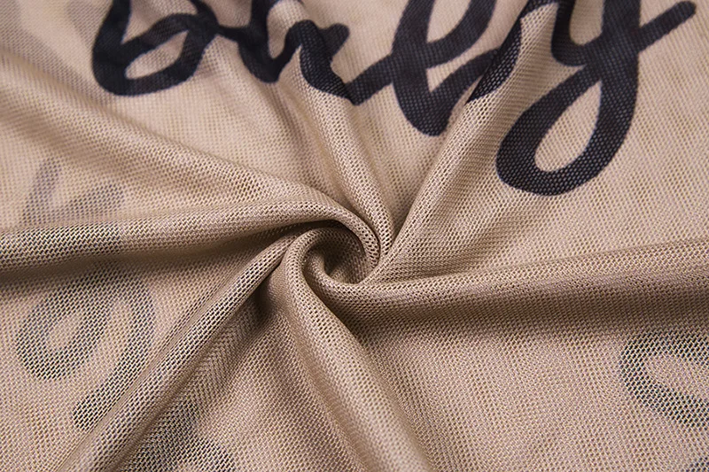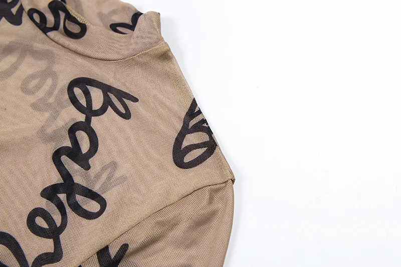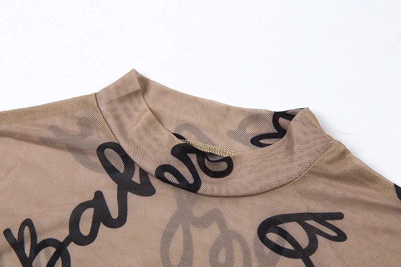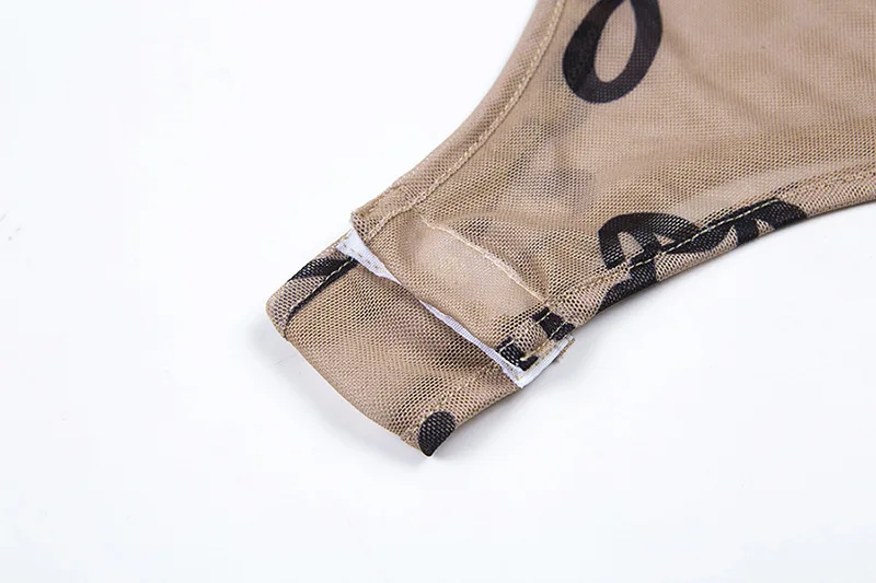 2024 Summer Sexy Letter Print Transparent Mesh Bodysuits Long Sleeve See Through Baby Bodycon Rompers Women Jumpsuits