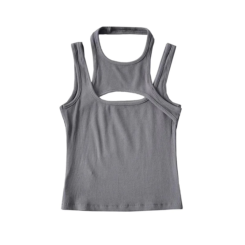 Asymmetrical Crop Top y2k E-girl Hollow Out Knitted Corset Top Sleeveless O Neck Mini Vest Basic Casual Sporty Summer