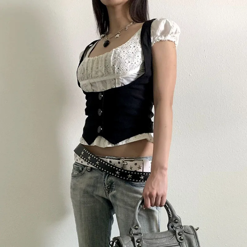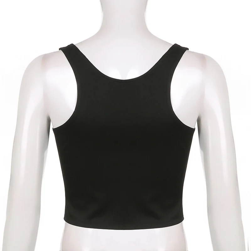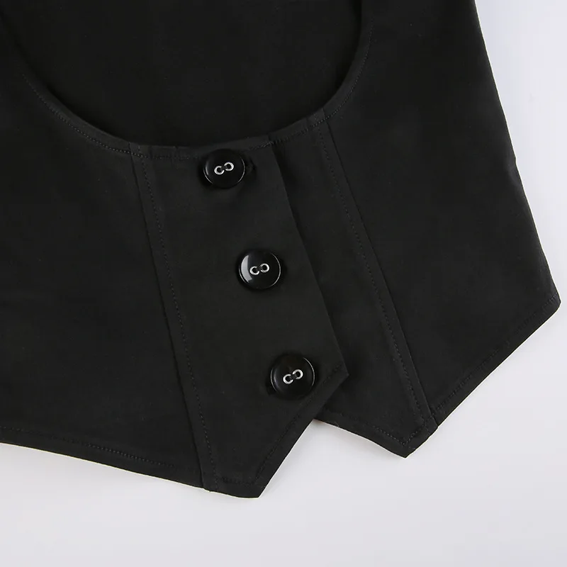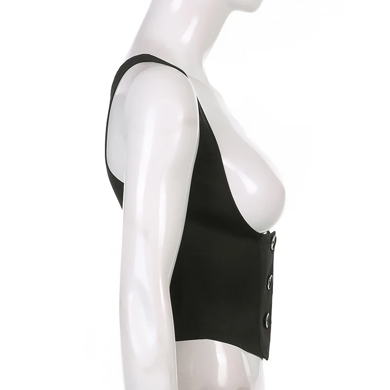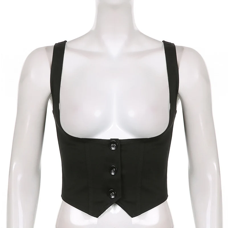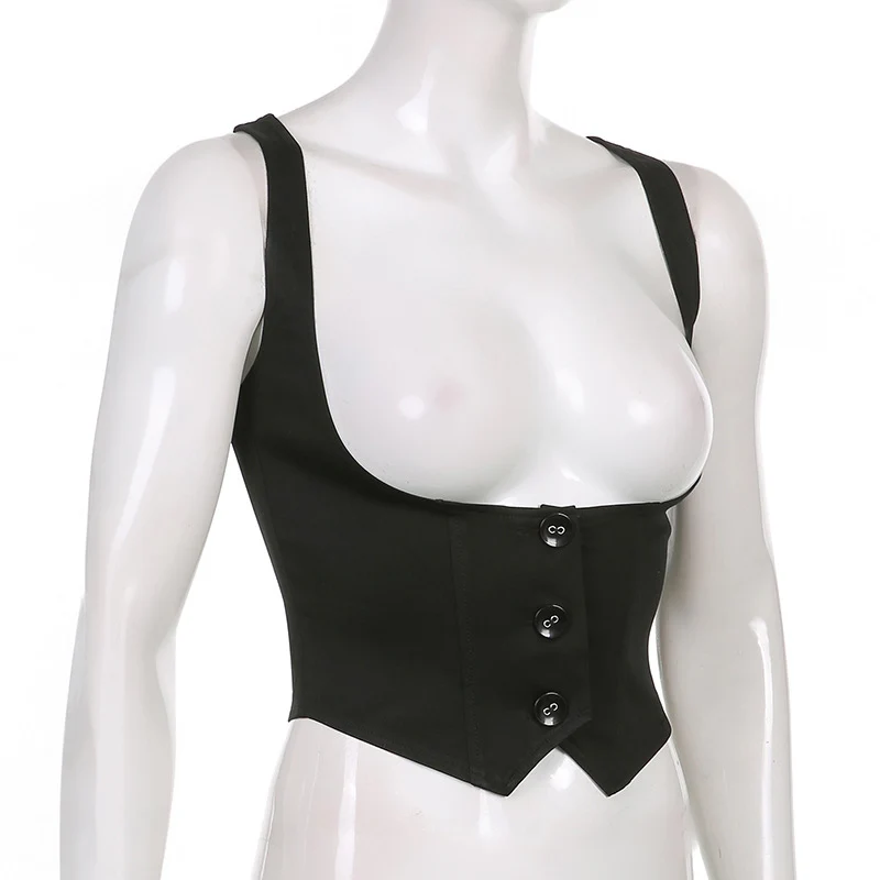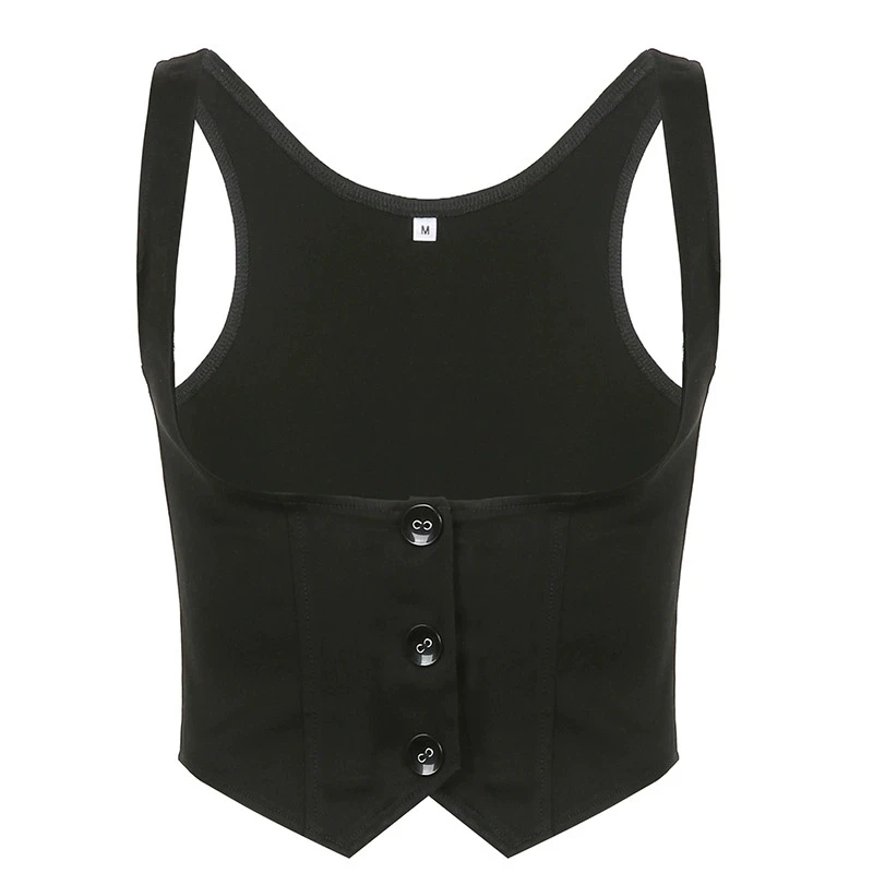 Black corset with buttons for women, adjustable sleeveless T-shirt, Vintage y2k street clothing, Harajuku 90s T-shirts belt vest