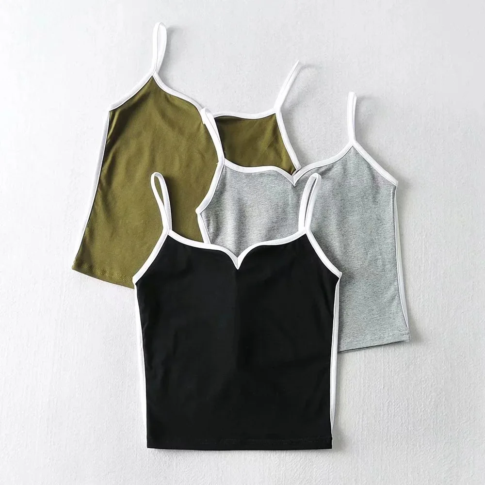 Black crop top summer sexy tops women 2024 spaghetti strap top casual v neck camis knit sleeveless cami top army green cami gray