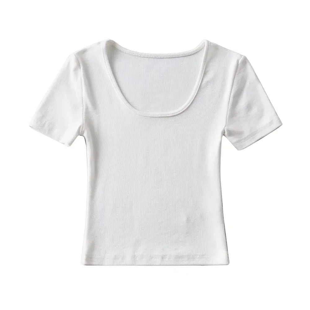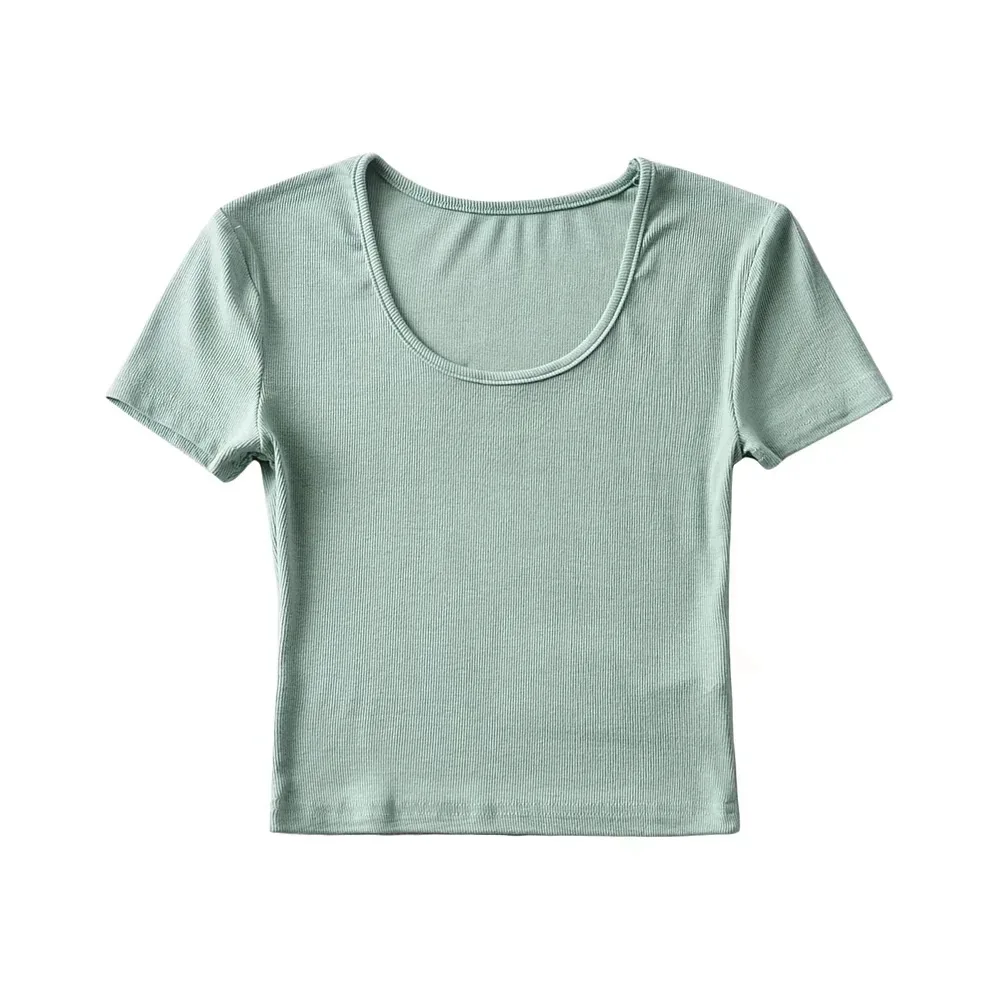 Casual Summer Woman Slim Fit T-shirt Tight Short-Sleeve O-neck Tee Crop Tops