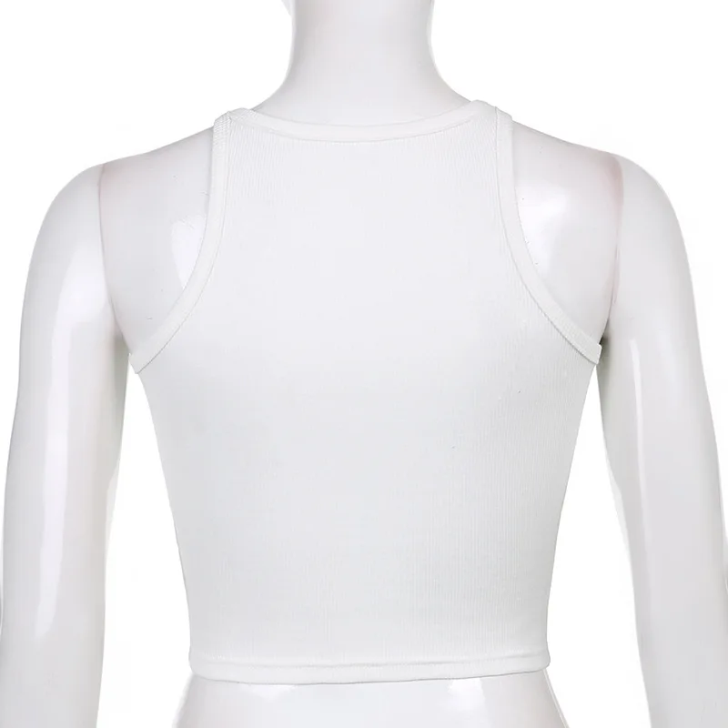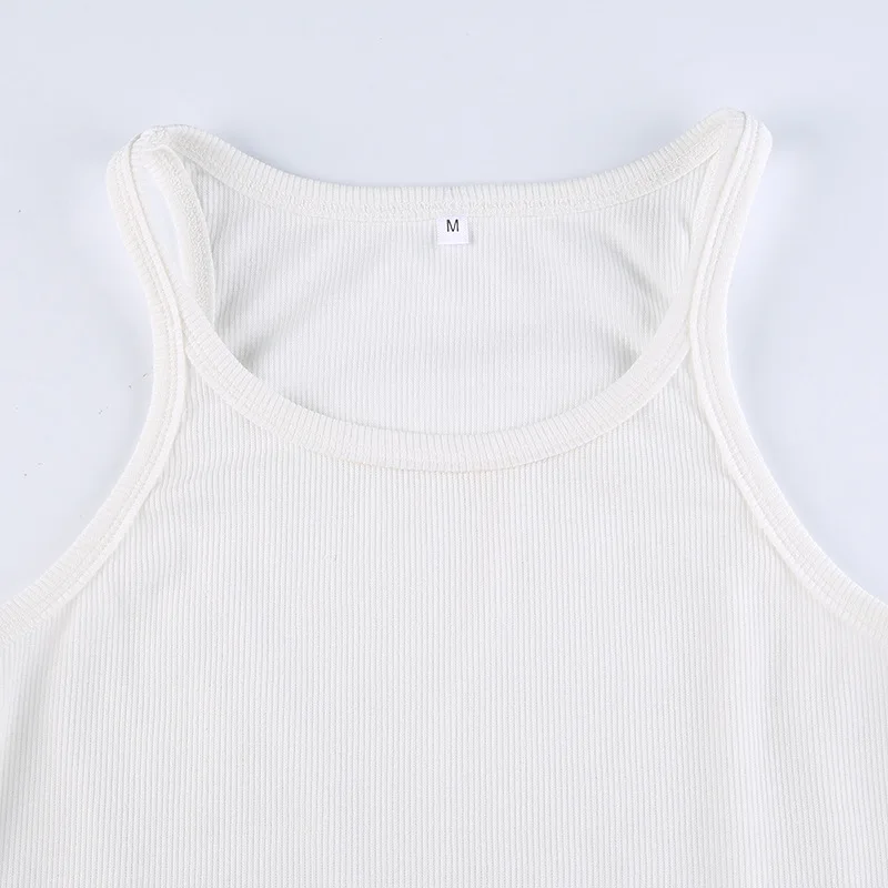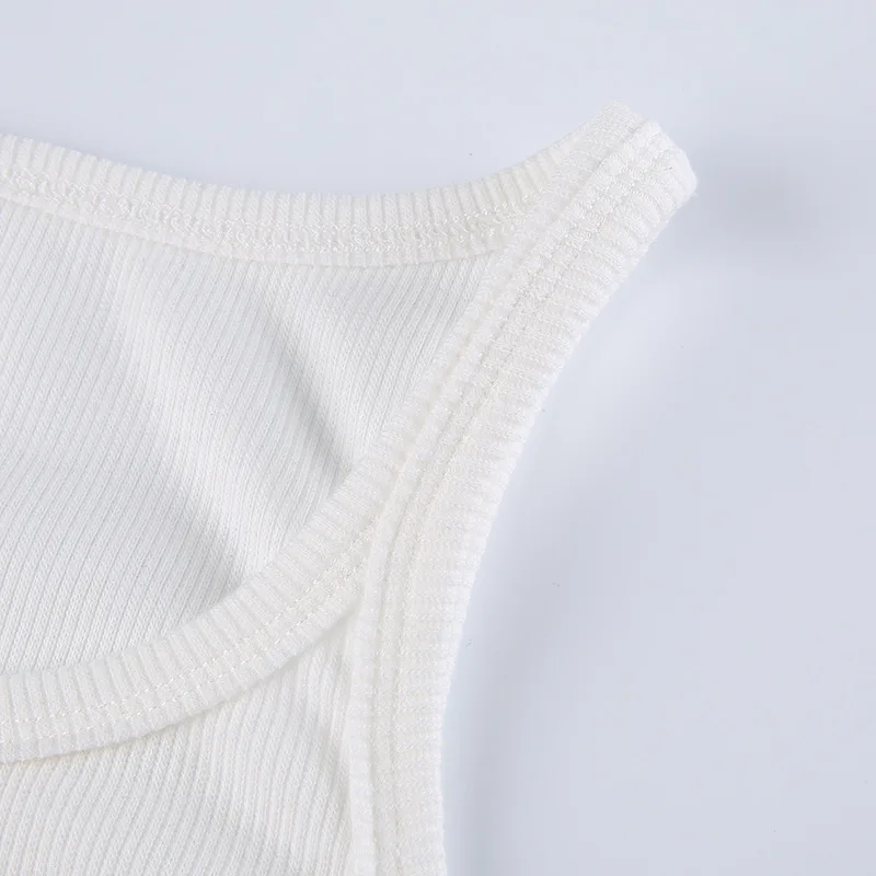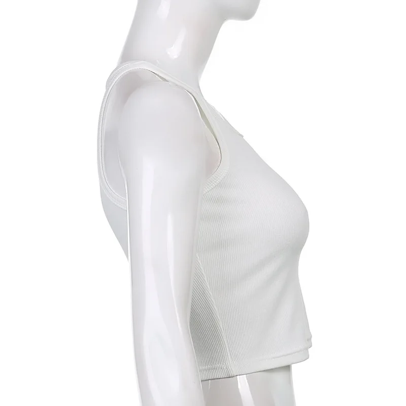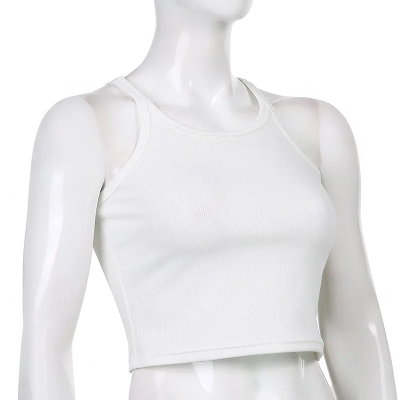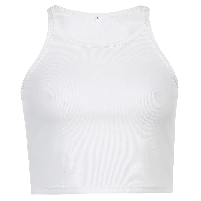 Casual White Sleeveless Cotton Cami Top Women Fashion Ribbed Crop Top Tees Ladies Basic Fitness Camisole Summer 2024