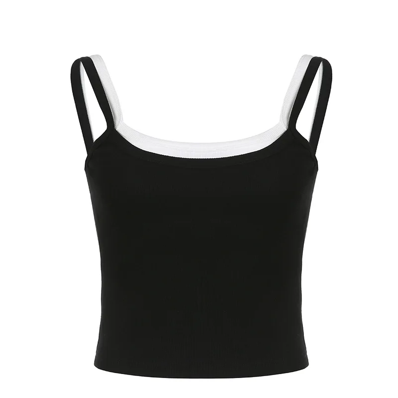 Contrast Fake Two-piece Crop Top Casual Patchwork Sleeveless Fashion Camis Vintage y2k Women Summer Tees Ladies Mini Vest