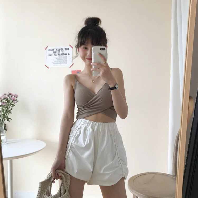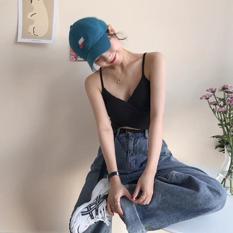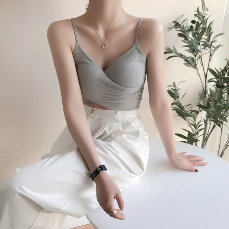Fashion Sexy Women V Neck Pure Color Patchwork Crop Tops Sleeveless Camisole Tank Tops Casual Summer Ladies Slim Vest