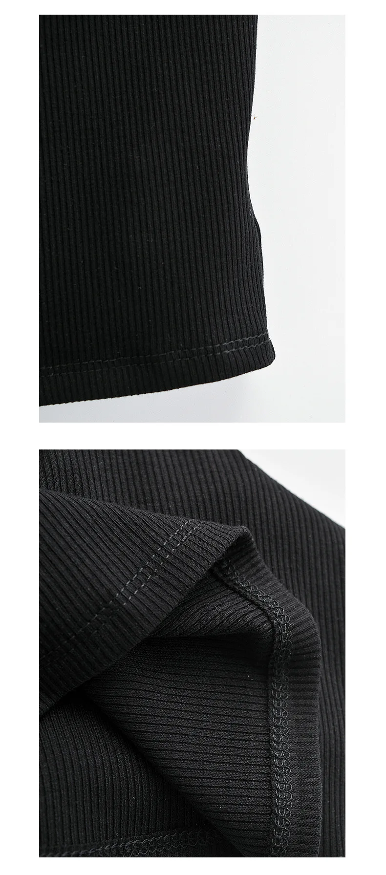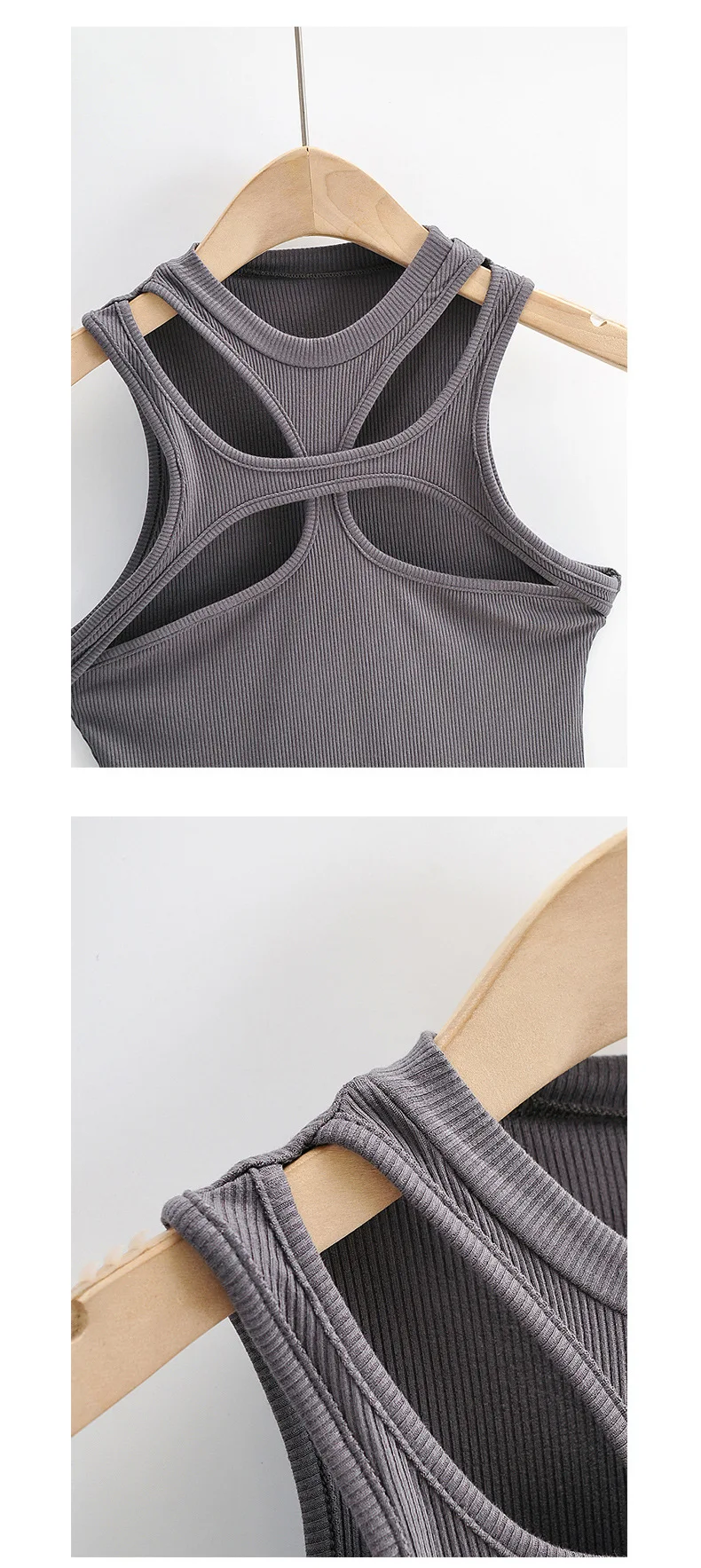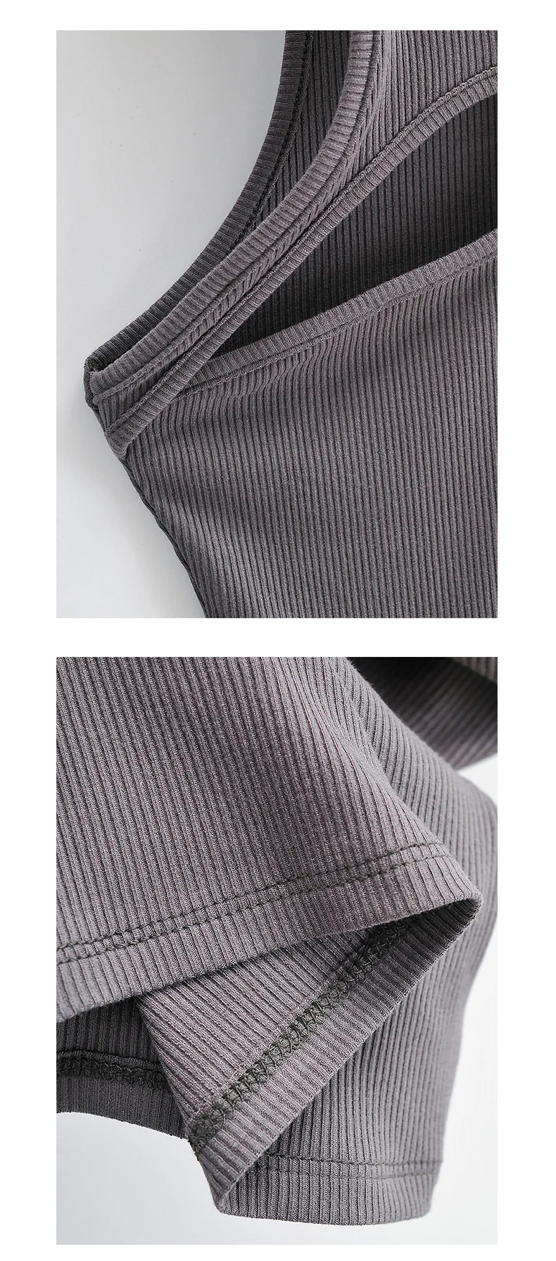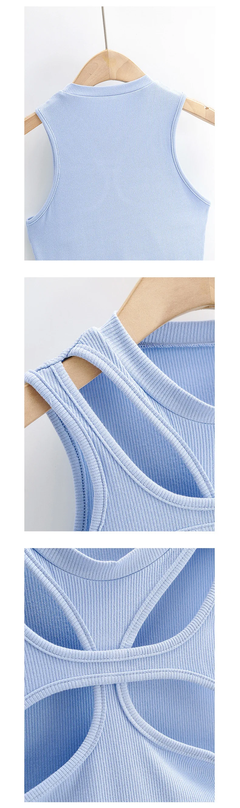 Girls New Asymmetrical Hollow Solid Color Knitted Round Neck Short-sleeved Summer Sexy Vest on The Chest