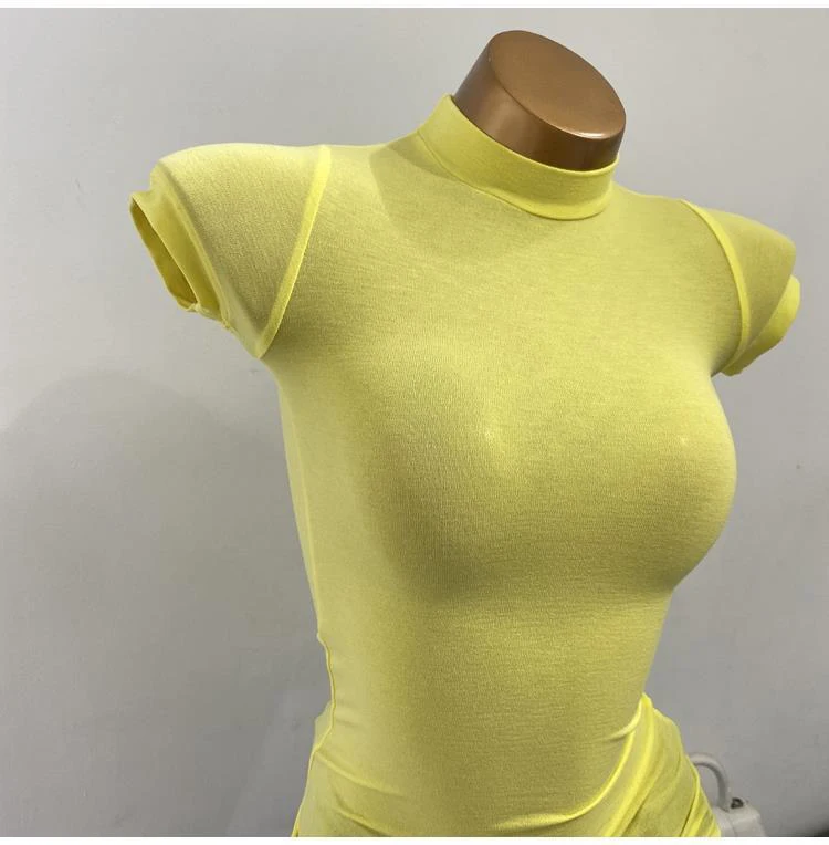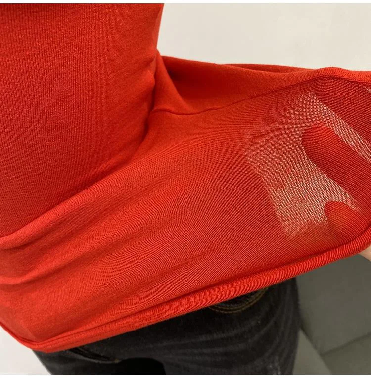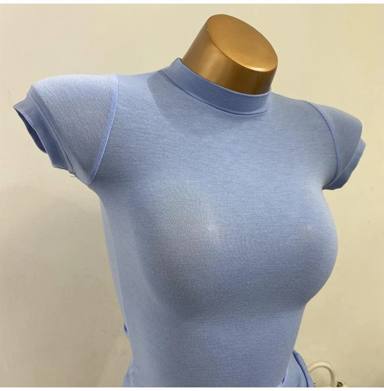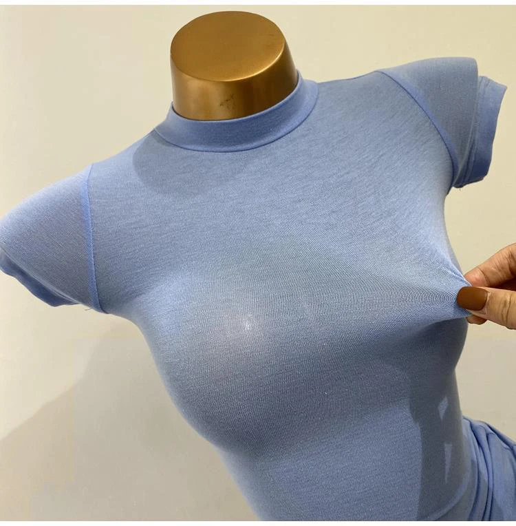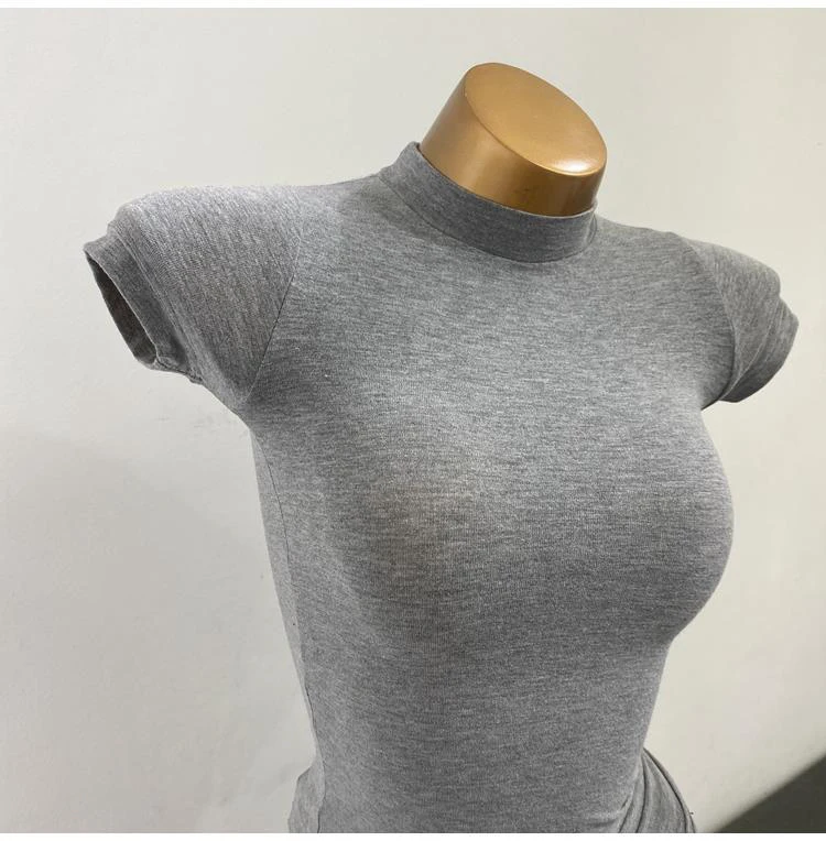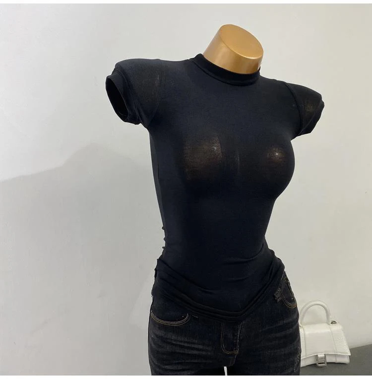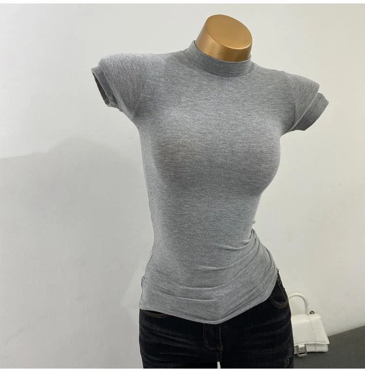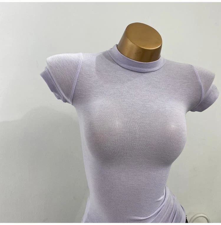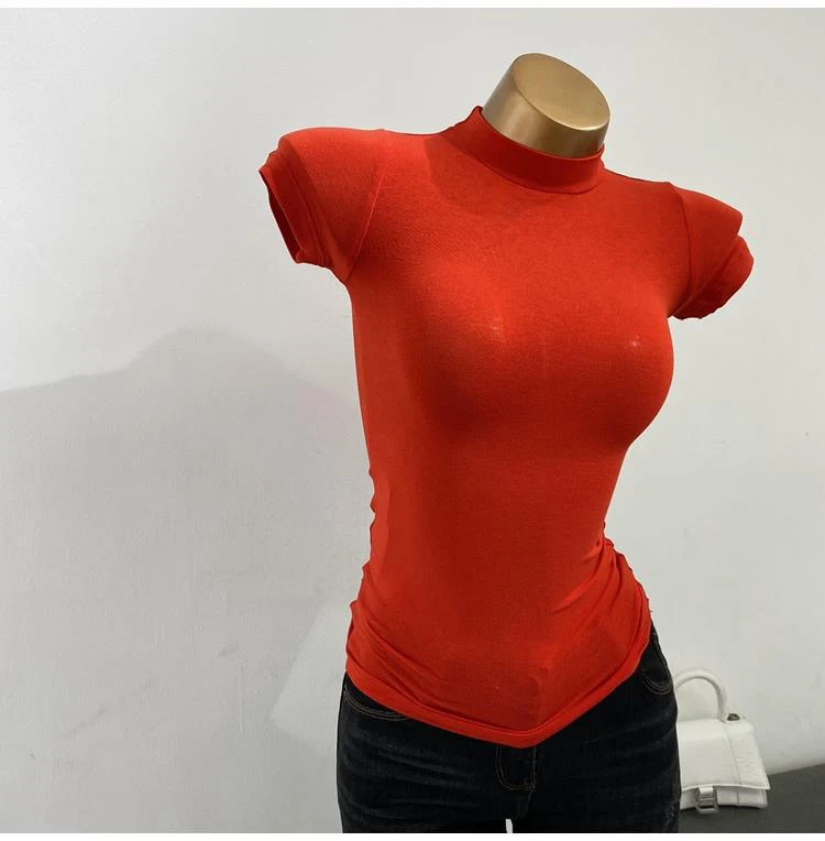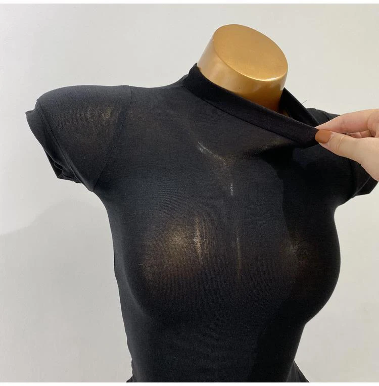 Half-high Collar T-shirt korean Transparent Short-sleeved Slim-fit Elastic Solid Inner Bottoming Shirt Sexy Big Chest T-shirt