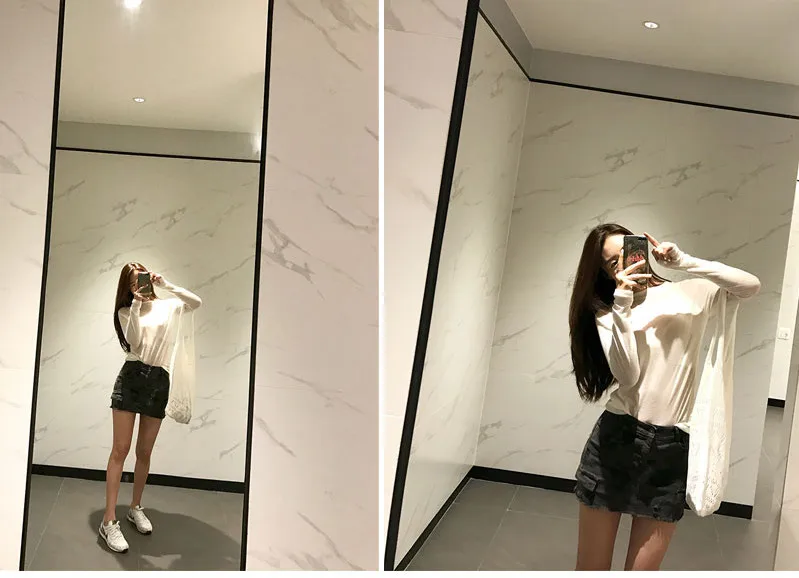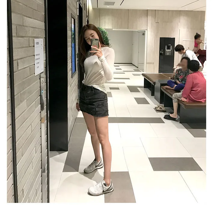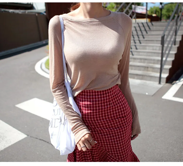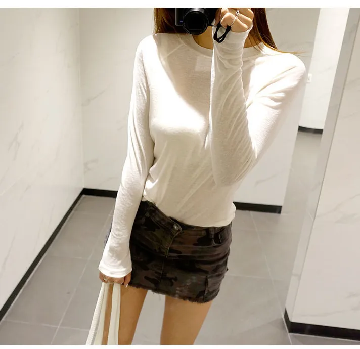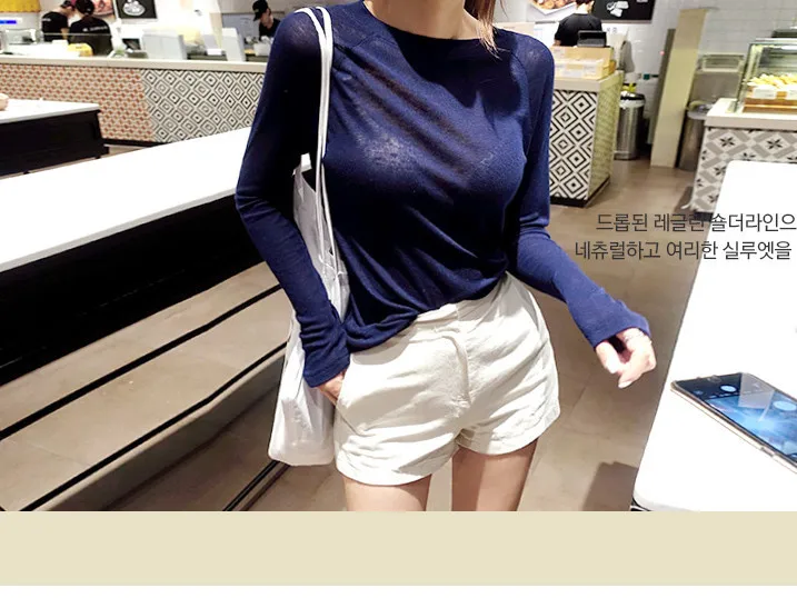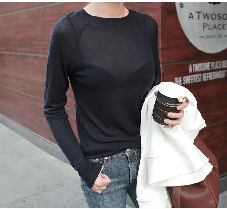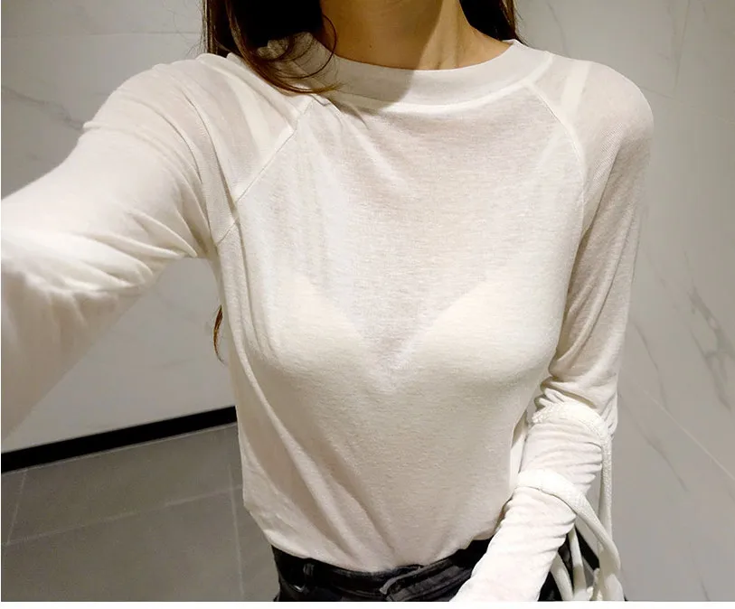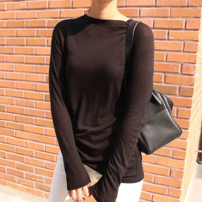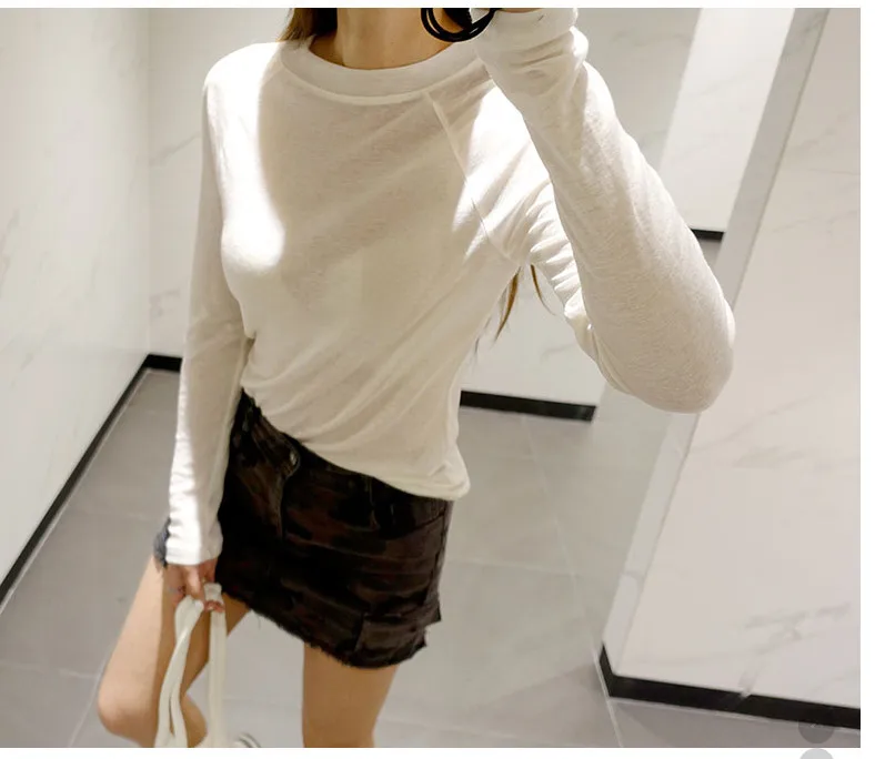 Hot Sale 2025 New Spring Summer Basic Tops Long Sleeve Loose Thin Sexy Blue T-shirt Women Fashion Solid Color Cotton Tee Femme