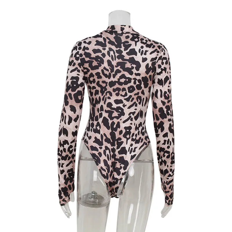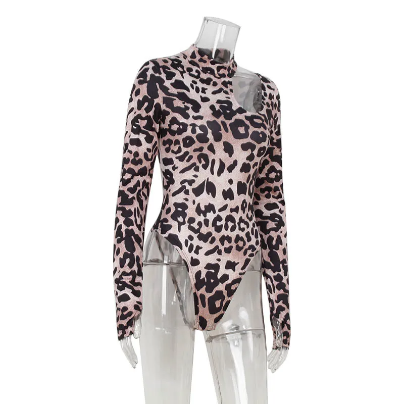 Leopard Cold Shoulder Women Bodysuits Dot 2025 Mock Neck Stand Collar Long Sleeve Basic Skinny Design Workwear Winter