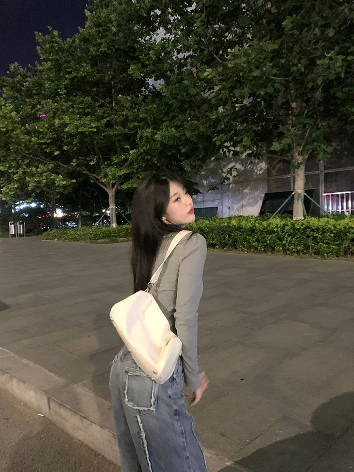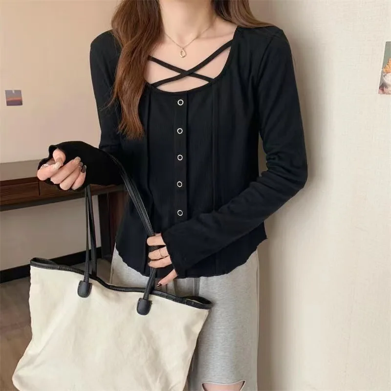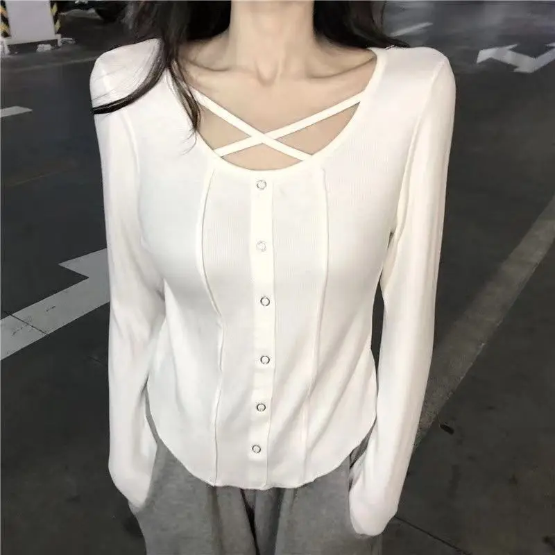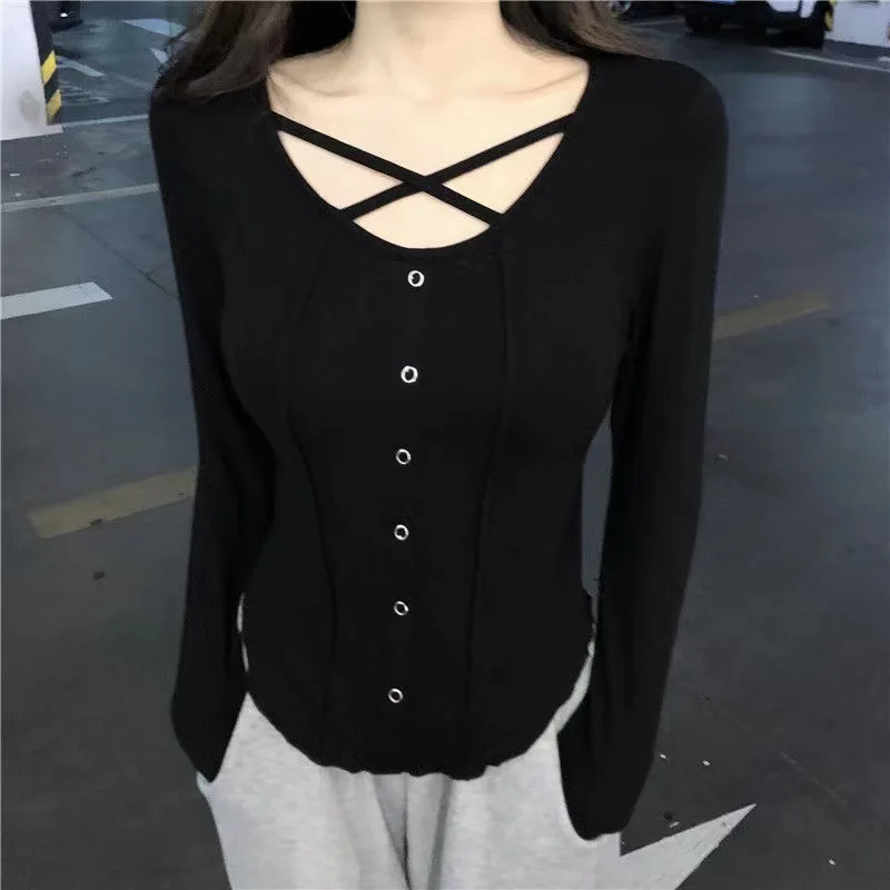 Long Sleeve Tshirt Women Harajuku Korean Style Slim Sexy Tops Female Solid Color Tees Streetwear Spring T-shirts
