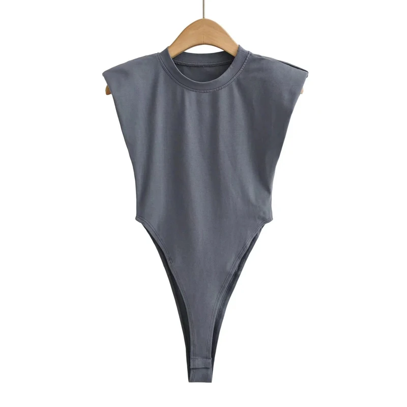 Sexy tops women 2024 Summer one-pieces bodycon bodysuit padded shoulder bodysuit black sleeveless body suits for women white