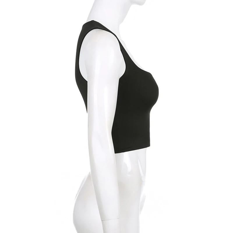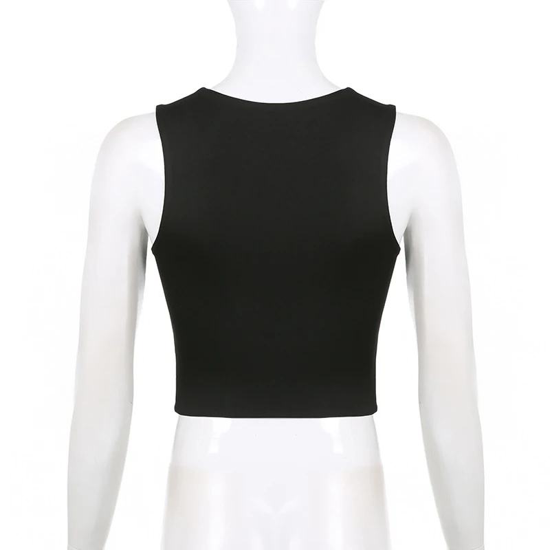 Sleeveless Collar Crop Top Women Tank Tops Casual Y2K Summer 2024 Black T Shirts Sexy