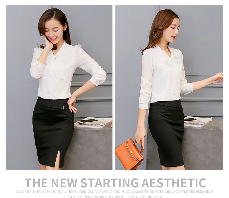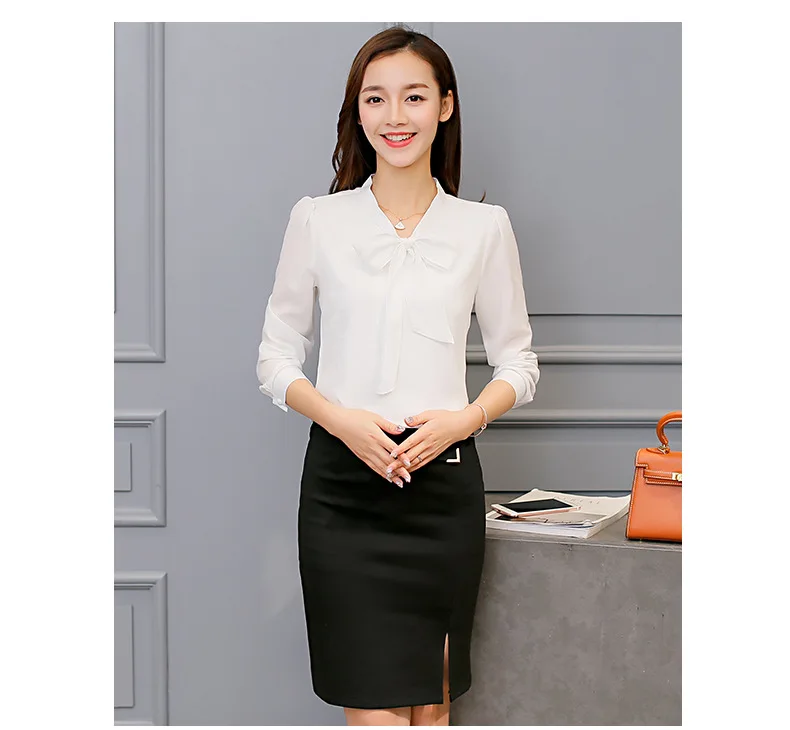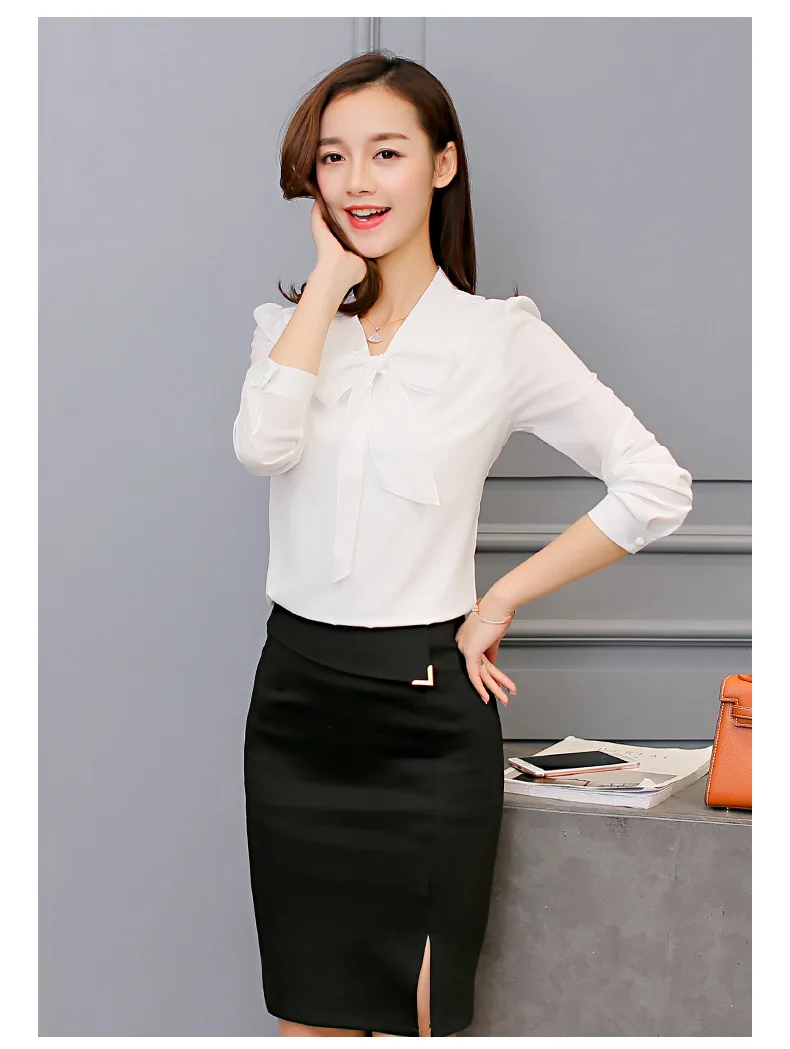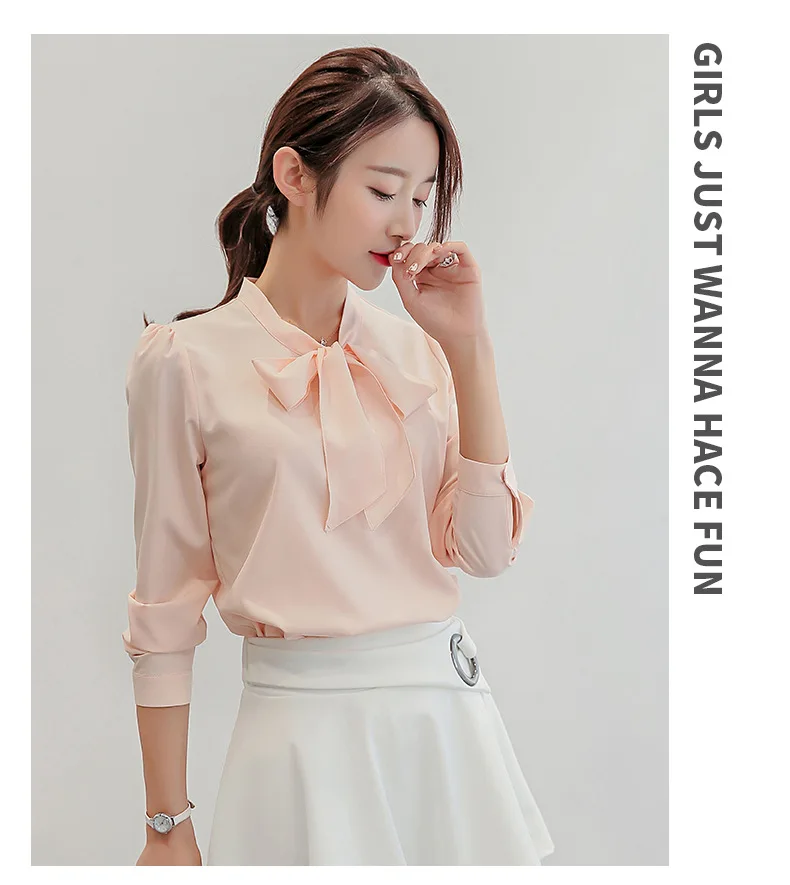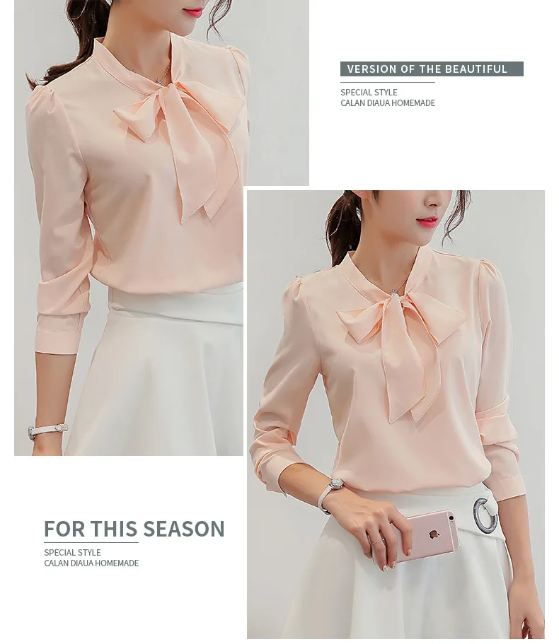 Spring Autumn The New Korean Casual Chiffon Blouse Shirt Pink White Office Women Shirt Chiffon Women Tops