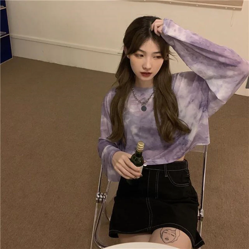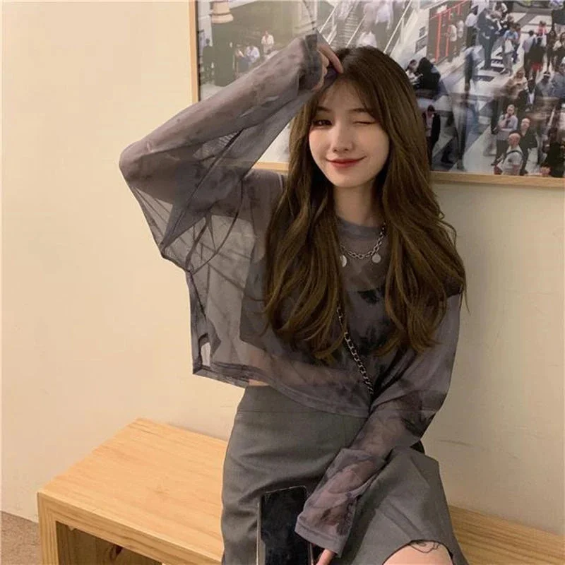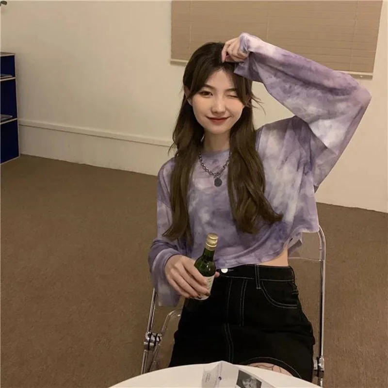 T-Shirts Women Tie Dye Casual Trendy Elegant Sun-proof Sexy Ladies Tees Teens Sheer Tops Summer Hot Selling Beach Simple Cozy