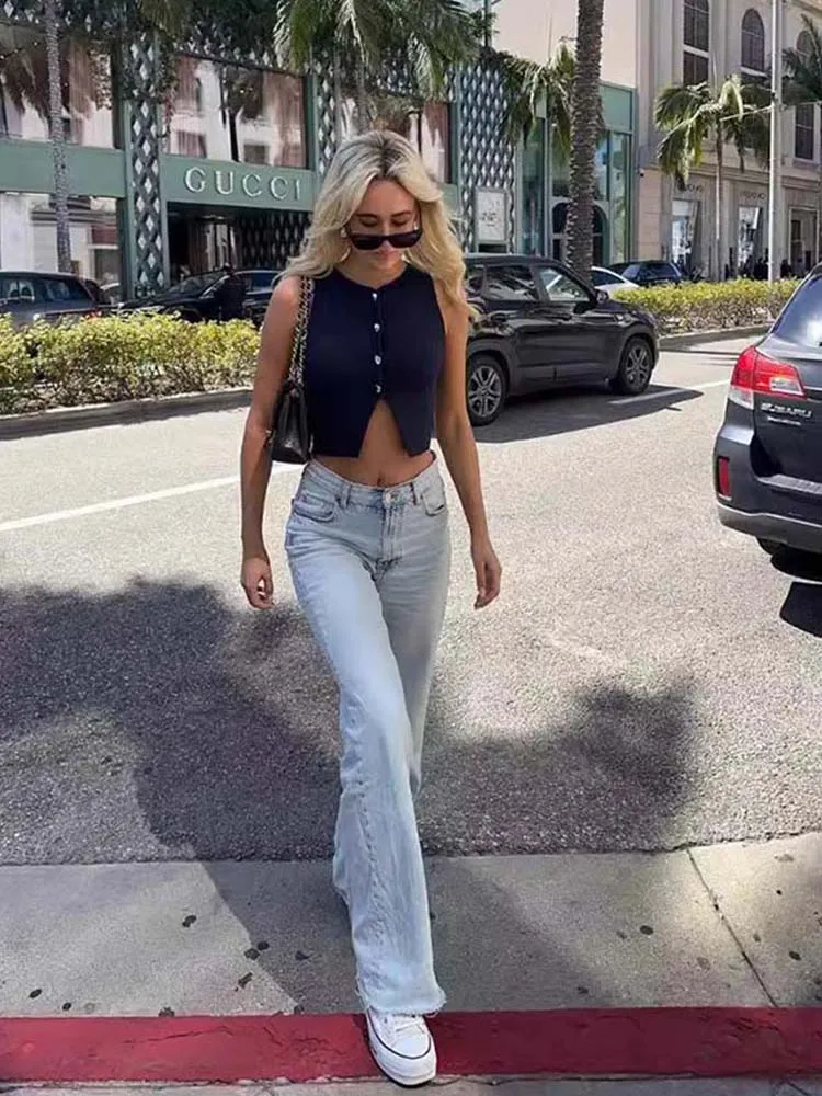 White Knit Crop Top Women Button Short Tops Woman 2025 Summer Tanks Camis Tops for Women Streetwear Vest Tank Top Female