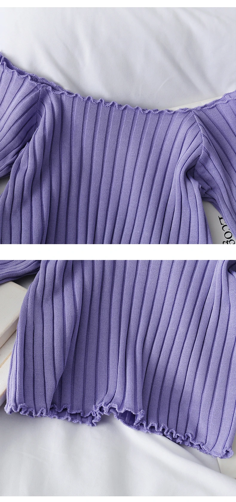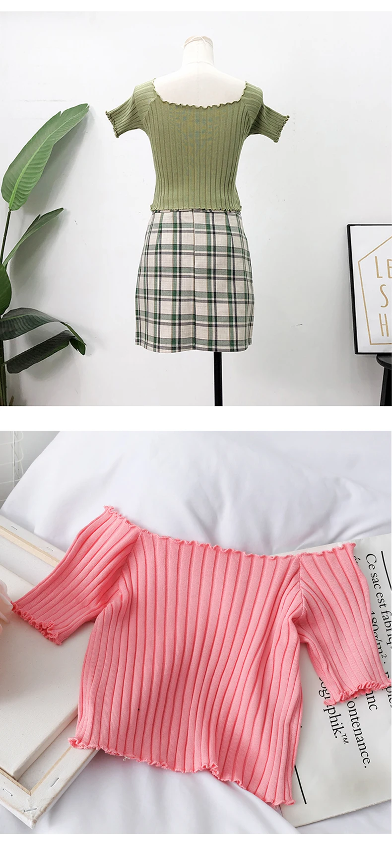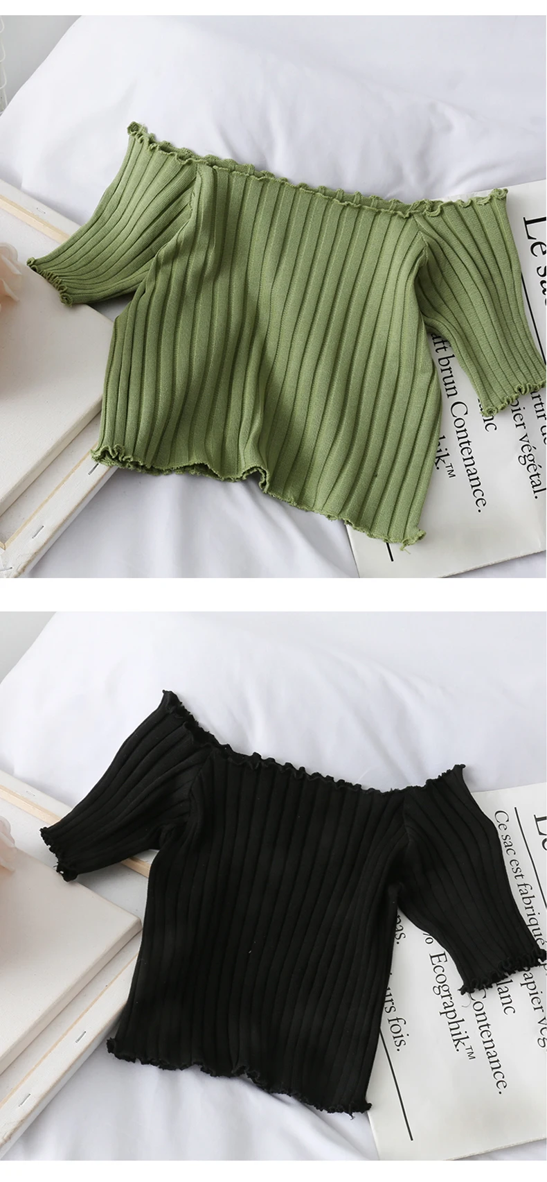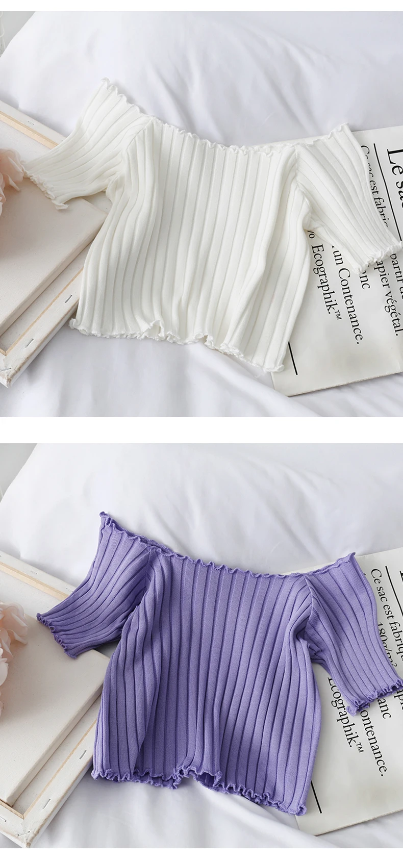 Women T-shirt Off Shoulder Knitting Crop Tops Women Fashion Solid Short Sleeve Skinny T-shirts Women 2023 Summer