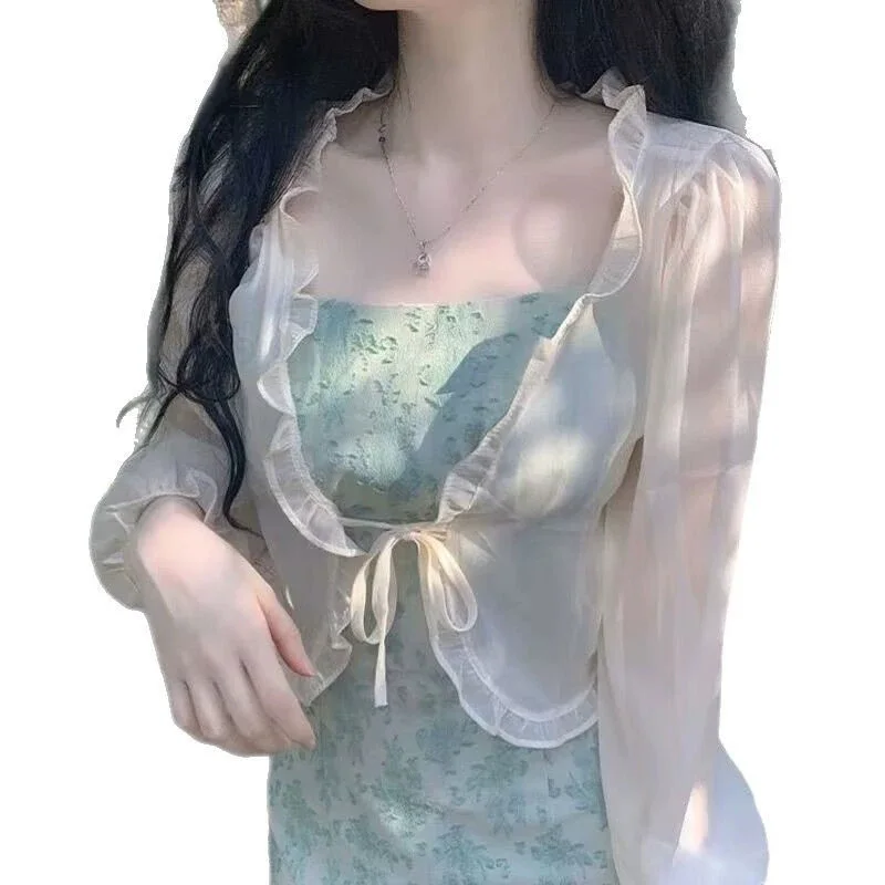 Women's Thin Breathable Long Sleeve T-shirts, Lace Tie Cardigan, Blouse, Ribbed Clothes, Sunscreen Clothes, Cover Blouse